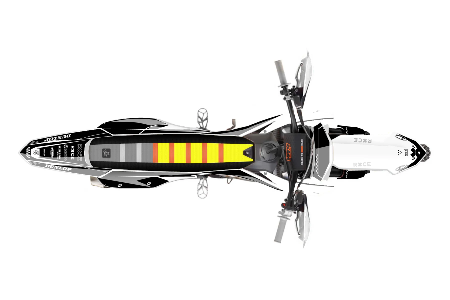 «Filter» — готовый комплект графики серии Staple для KTM Offroad Graphic Kit KTM XC-F 350 2023. В комплекте: графика на бак и боковые облицовки, крылья (переднее и заднее), передний щиток, номерные таблички, защита вилки. Материал: ПВХ-винил 80 мкр с холодной ламинацией 300 мкр, общая толщина 380 мкр; покрытие глянцевое или матовое на выбор. Устойчив к UV-излучению, воде, бензину и мойке высокого давления. Клей акриловый на сольвентной основе — постоянный, для гибких пластиков. На простых поверхностях монтируется без нагрева; для сложных изгибов рекомендуем фен. Этот пресет можно заказать как есть или взять за основу в конструкторе: поменять цвета, добавить стартовый номер и свой бренд. Производство — 3–5 рабочих дней, доставка по России СДЭКом или Почтой, по СНГ — курьерскими службами.