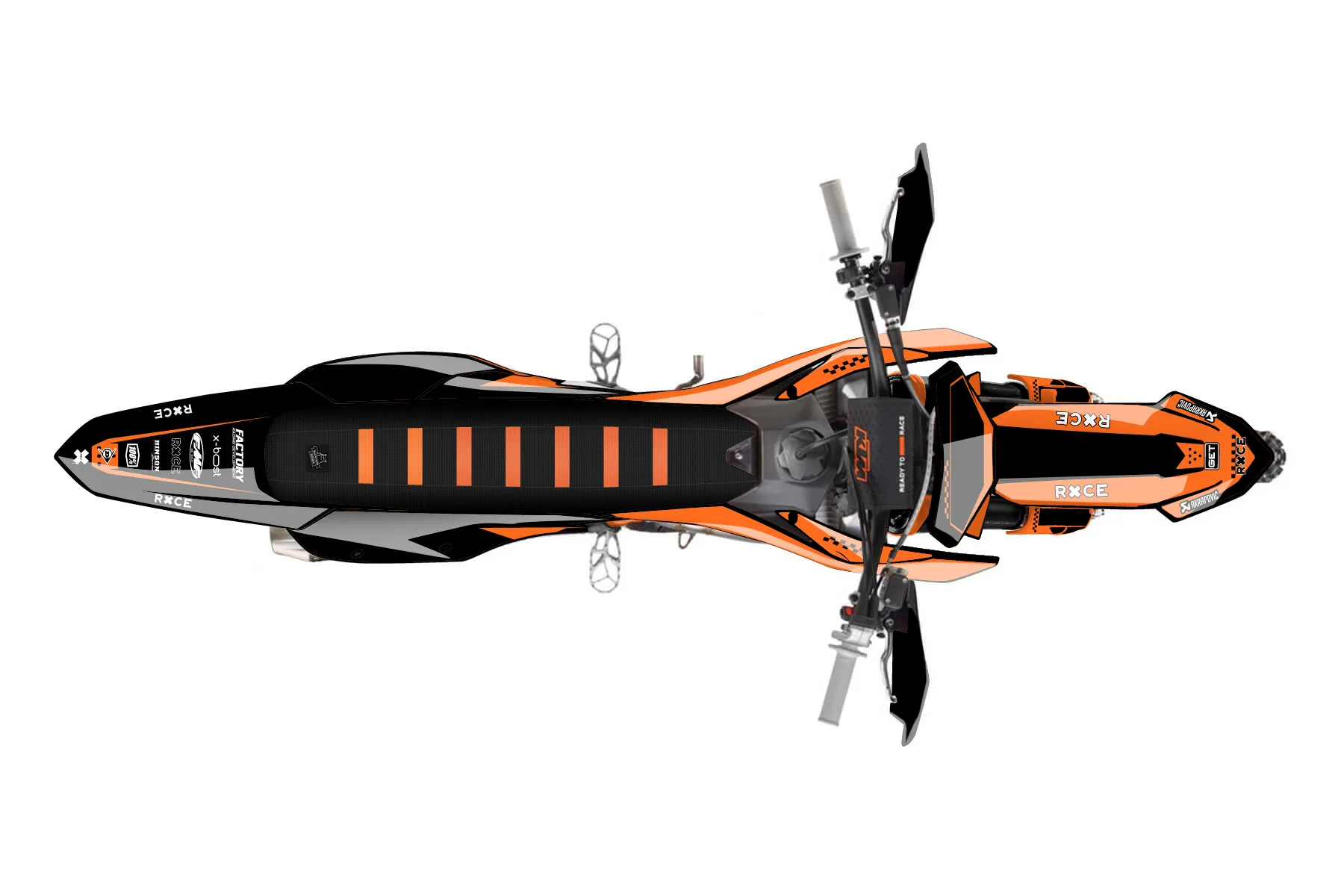 «JMRdesign26» — готовый комплект графики серии Staple для KTM Offroad Graphic Kit KTM XC-F 350 2023. В комплекте: графика на бак и боковые облицовки, крылья (переднее и заднее), передний щиток, номерные таблички, защита вилки. Материал: ПВХ-винил 80 мкр с холодной ламинацией 300 мкр, общая толщина 380 мкр; покрытие глянцевое или матовое на выбор. Устойчив к UV-излучению, воде, бензину и мойке высокого давления. Клей акриловый на сольвентной основе — постоянный, для гибких пластиков. На простых поверхностях монтируется без нагрева; для сложных изгибов рекомендуем фен. Этот пресет можно заказать как есть или взять за основу в конструкторе: поменять цвета, добавить стартовый номер и свой бренд. Производство — 3–5 рабочих дней, доставка по России СДЭКом или Почтой, по СНГ — курьерскими службами.