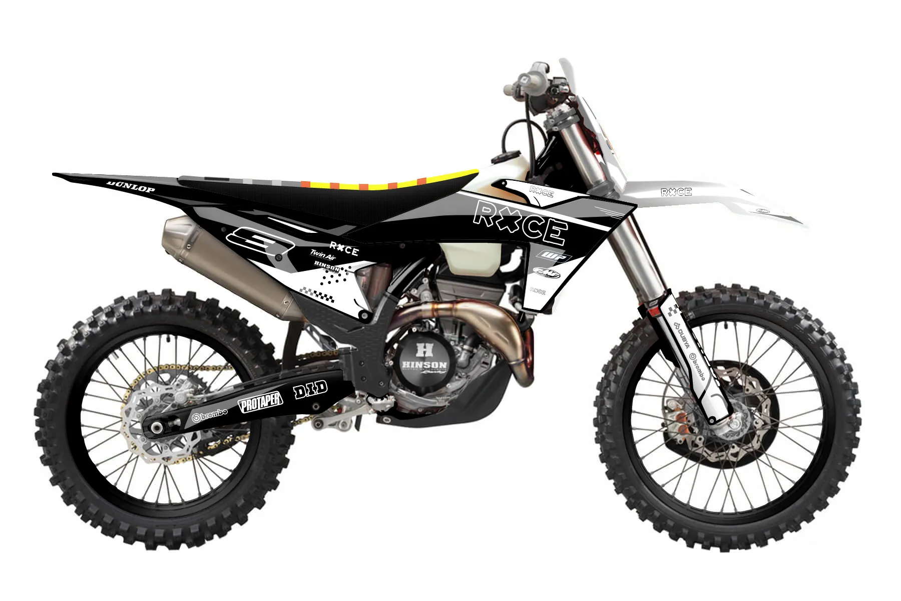 «Rough» — готовый комплект графики серии Staple для KTM Offroad Graphic Kit KTM XC-F 350 2023. В комплекте: графика на бак и боковые облицовки, крылья (переднее и заднее), передний щиток, номерные таблички, защита вилки. Материал: ПВХ-винил 80 мкр с холодной ламинацией 300 мкр, общая толщина 380 мкр; покрытие глянцевое или матовое на выбор. Устойчив к UV-излучению, воде, бензину и мойке высокого давления. Клей акриловый на сольвентной основе — постоянный, для гибких пластиков. На простых поверхностях монтируется без нагрева; для сложных изгибов рекомендуем фен. Этот пресет можно заказать как есть или взять за основу в конструкторе: поменять цвета, добавить стартовый номер и свой бренд. Производство — 3–5 рабочих дней, доставка по России СДЭКом или Почтой, по СНГ — курьерскими службами.