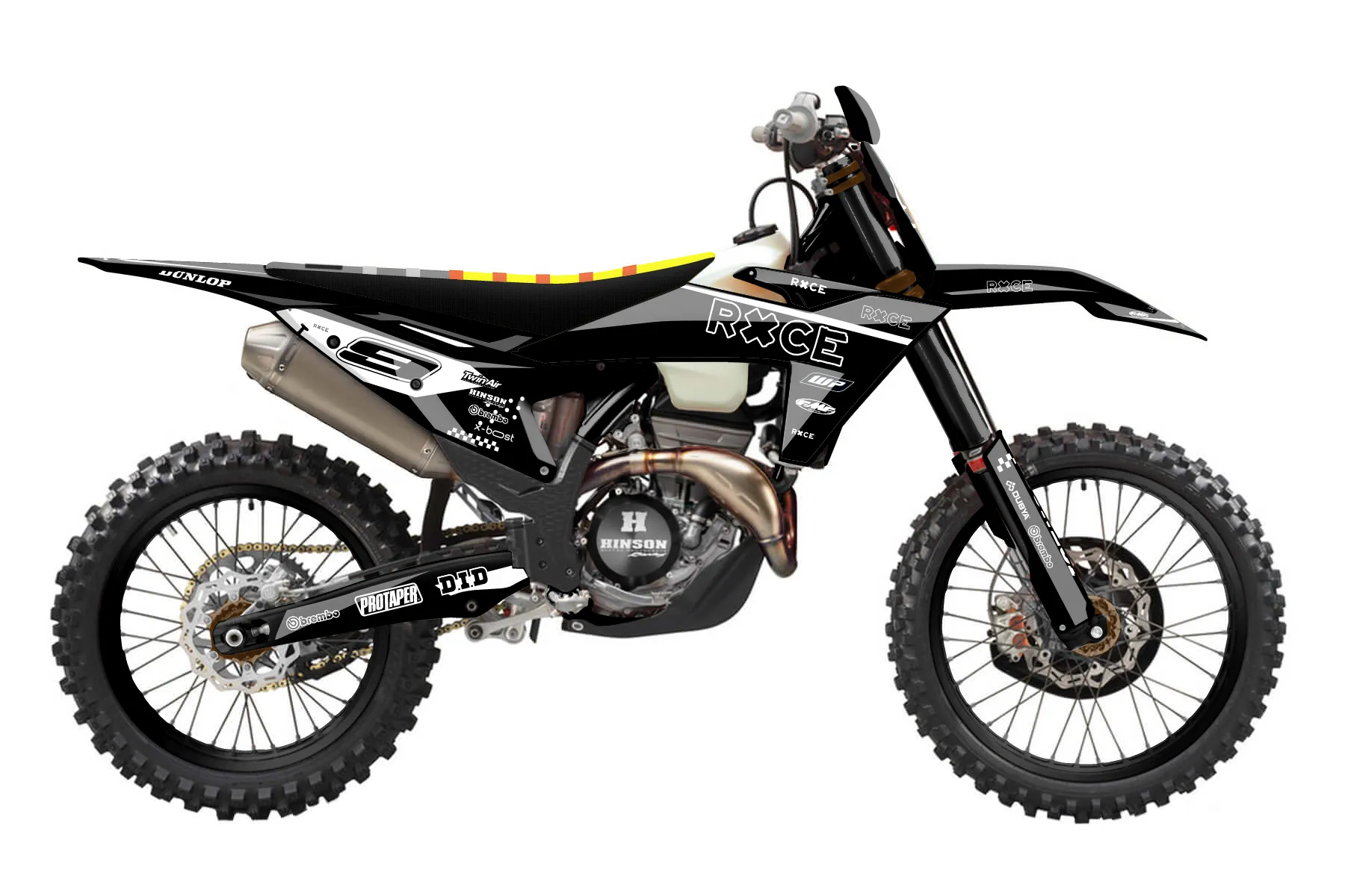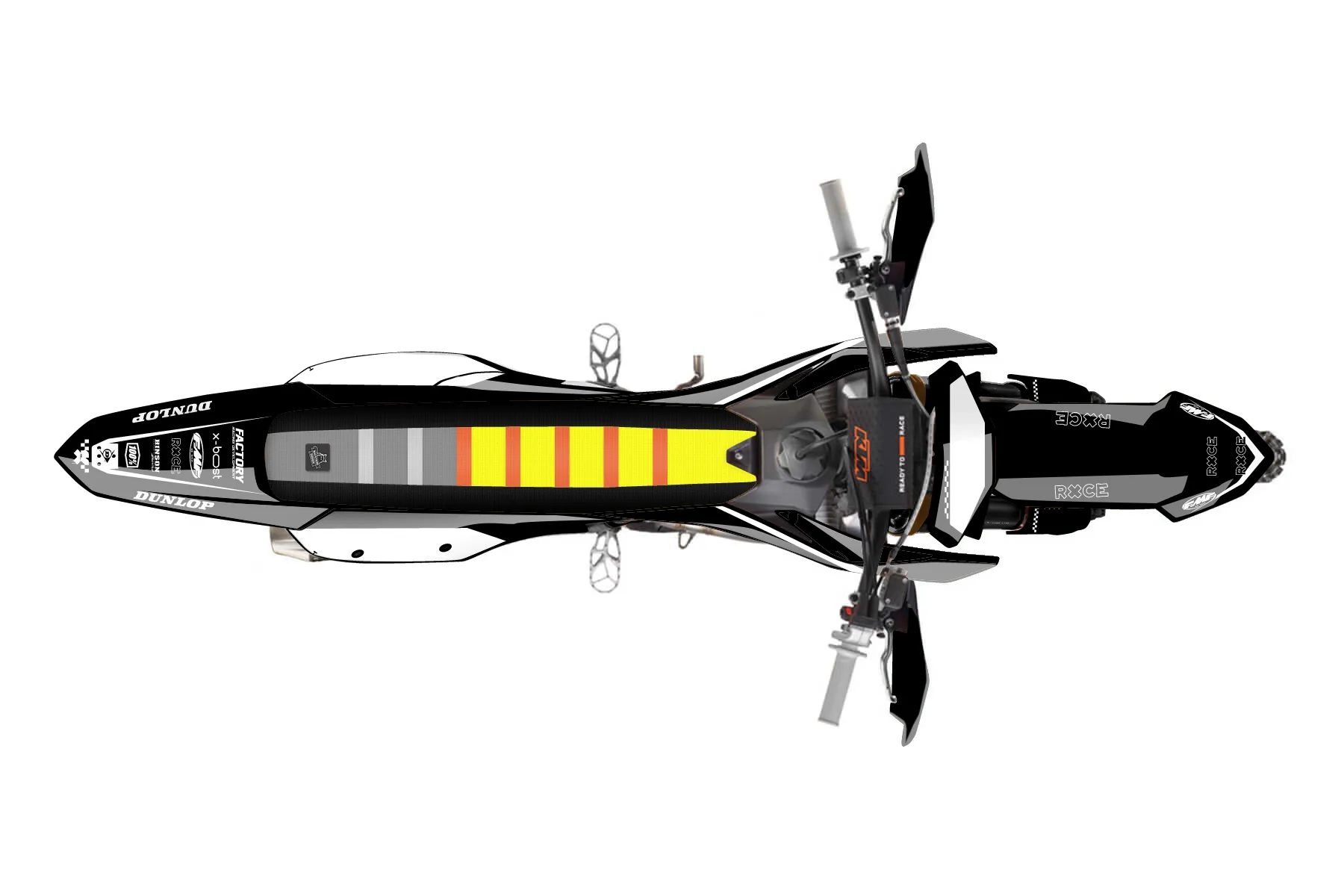 «Ryder» — готовый комплект графики серии Staple для KTM Offroad Graphic Kit KTM XC-F 350 2023. В комплекте: графика на бак и боковые облицовки, крылья (переднее и заднее), передний щиток, номерные таблички, защита вилки. Материал: ПВХ-винил 80 мкр с холодной ламинацией 300 мкр, общая толщина 380 мкр; покрытие глянцевое или матовое на выбор. Устойчив к UV-излучению, воде, бензину и мойке высокого давления. Клей акриловый на сольвентной основе — постоянный, для гибких пластиков. На простых поверхностях монтируется без нагрева; для сложных изгибов рекомендуем фен. Этот пресет можно заказать как есть или взять за основу в конструкторе: поменять цвета, добавить стартовый номер и свой бренд. Производство — 3–5 рабочих дней, доставка по России СДЭКом или Почтой, по СНГ — курьерскими службами.