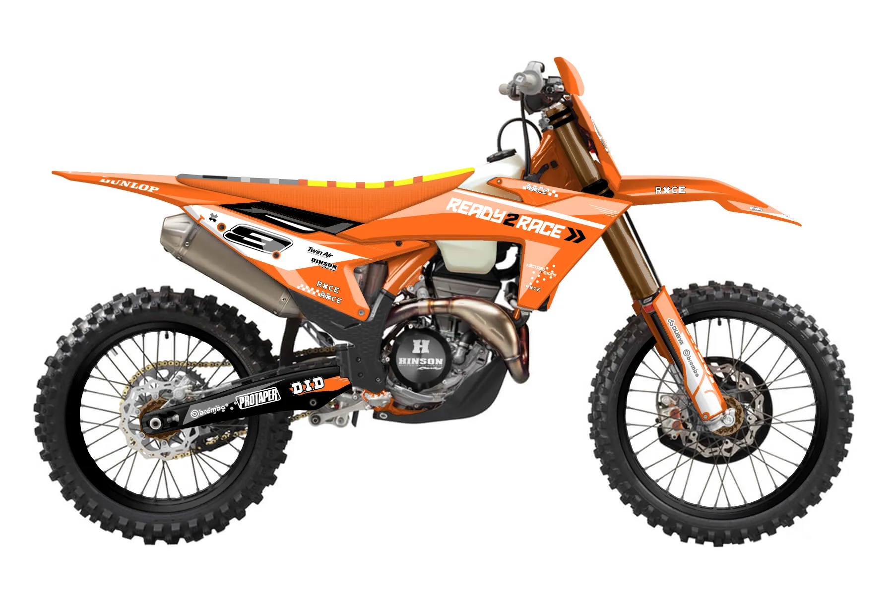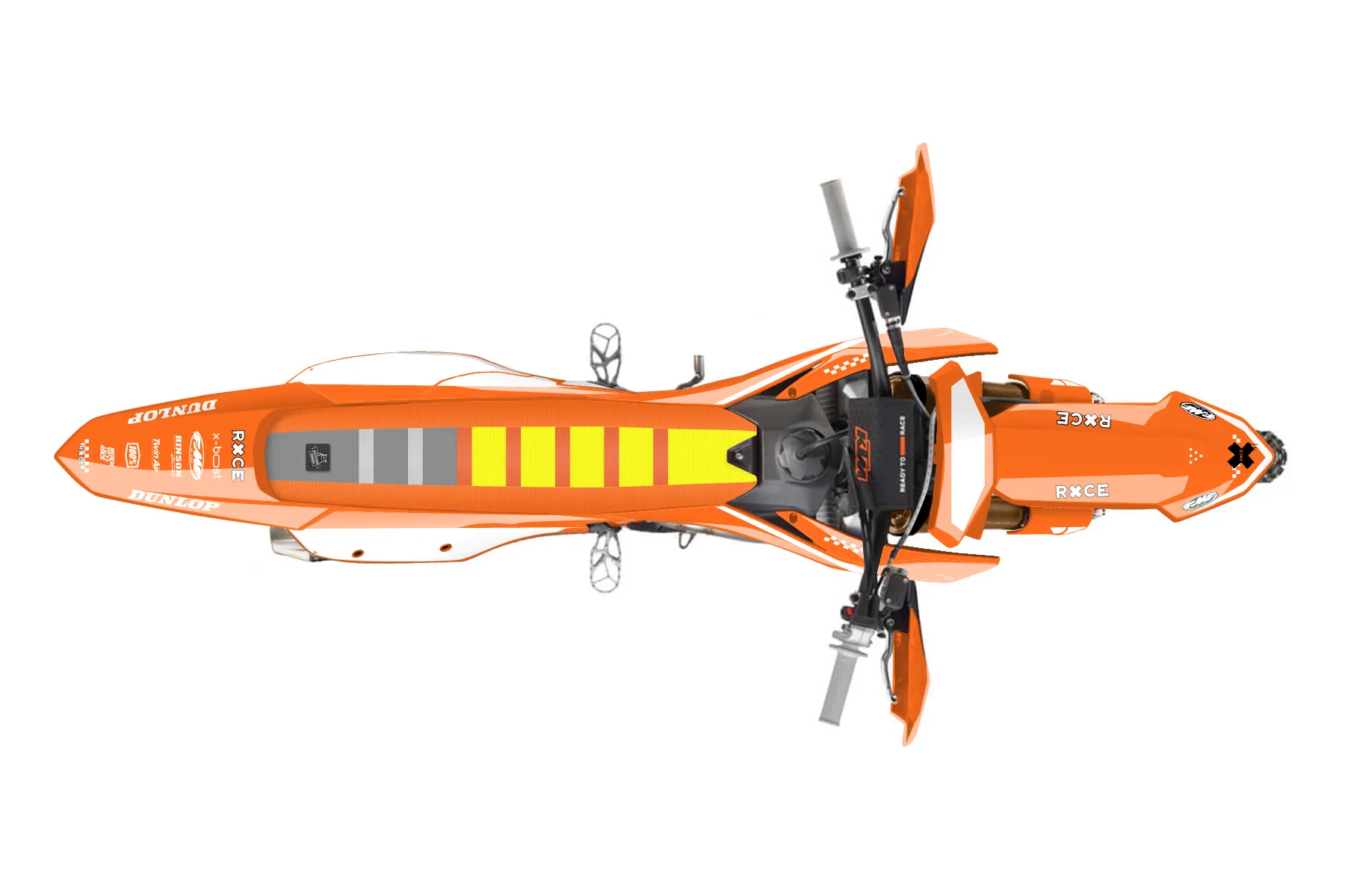 «Type» — готовый комплект графики серии Staple для KTM Offroad Graphic Kit KTM XC-F 350 2023. В комплекте: графика на бак и боковые облицовки, крылья (переднее и заднее), передний щиток, номерные таблички, защита вилки. Материал: ПВХ-винил 80 мкр с холодной ламинацией 300 мкр, общая толщина 380 мкр; покрытие глянцевое или матовое на выбор. Устойчив к UV-излучению, воде, бензину и мойке высокого давления. Клей акриловый на сольвентной основе — постоянный, для гибких пластиков. На простых поверхностях монтируется без нагрева; для сложных изгибов рекомендуем фен. Этот пресет можно заказать как есть или взять за основу в конструкторе: поменять цвета, добавить стартовый номер и свой бренд. Производство — 3–5 рабочих дней, доставка по России СДЭКом или Почтой, по СНГ — курьерскими службами.