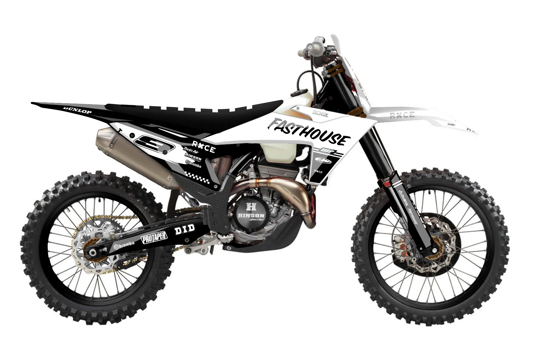 «Clear» — готовый комплект графики серии Untucked для KTM Offroad Graphic Kit KTM XC-F 350 2023. В комплекте: графика на бак и боковые облицовки, крылья (переднее и заднее), передний щиток, номерные таблички, защита вилки. Материал: ПВХ-винил 80 мкр с холодной ламинацией 300 мкр, общая толщина 380 мкр; покрытие глянцевое или матовое на выбор. Устойчив к UV-излучению, воде, бензину и мойке высокого давления. Клей акриловый на сольвентной основе — постоянный, для гибких пластиков. На простых поверхностях монтируется без нагрева; для сложных изгибов рекомендуем фен. Этот пресет можно заказать как есть или взять за основу в конструкторе: поменять цвета, добавить стартовый номер и свой бренд. Производство — 3–5 рабочих дней, доставка по России СДЭКом или Почтой, по СНГ — курьерскими службами.
