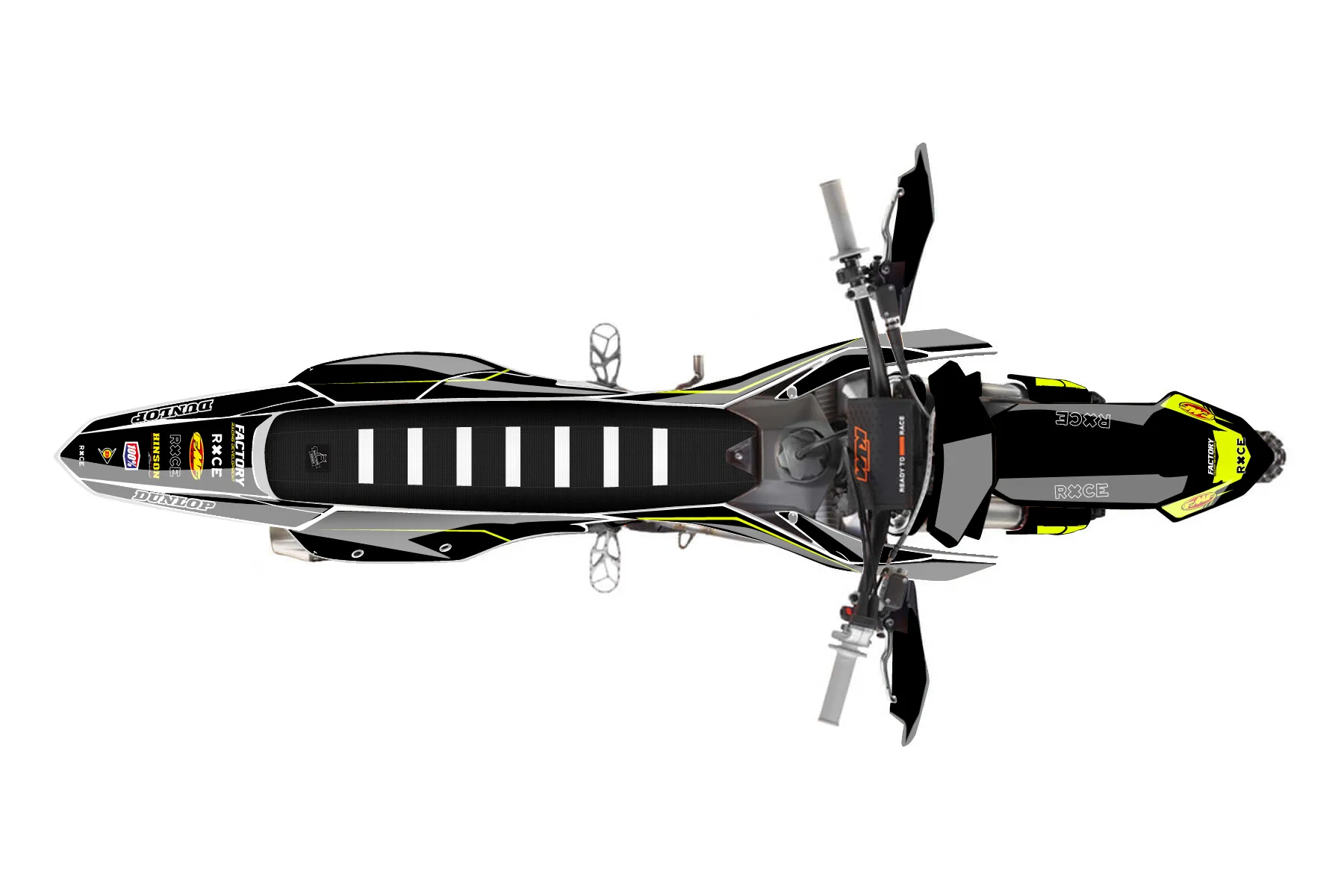 «Close» — готовый комплект графики серии Untucked для KTM Offroad Graphic Kit KTM XC-F 350 2023. В комплекте: графика на бак и боковые облицовки, крылья (переднее и заднее), передний щиток, номерные таблички, защита вилки. Материал: ПВХ-винил 80 мкр с холодной ламинацией 300 мкр, общая толщина 380 мкр; покрытие глянцевое или матовое на выбор. Устойчив к UV-излучению, воде, бензину и мойке высокого давления. Клей акриловый на сольвентной основе — постоянный, для гибких пластиков. На простых поверхностях монтируется без нагрева; для сложных изгибов рекомендуем фен. Этот пресет можно заказать как есть или взять за основу в конструкторе: поменять цвета, добавить стартовый номер и свой бренд. Производство — 3–5 рабочих дней, доставка по России СДЭКом или Почтой, по СНГ — курьерскими службами.