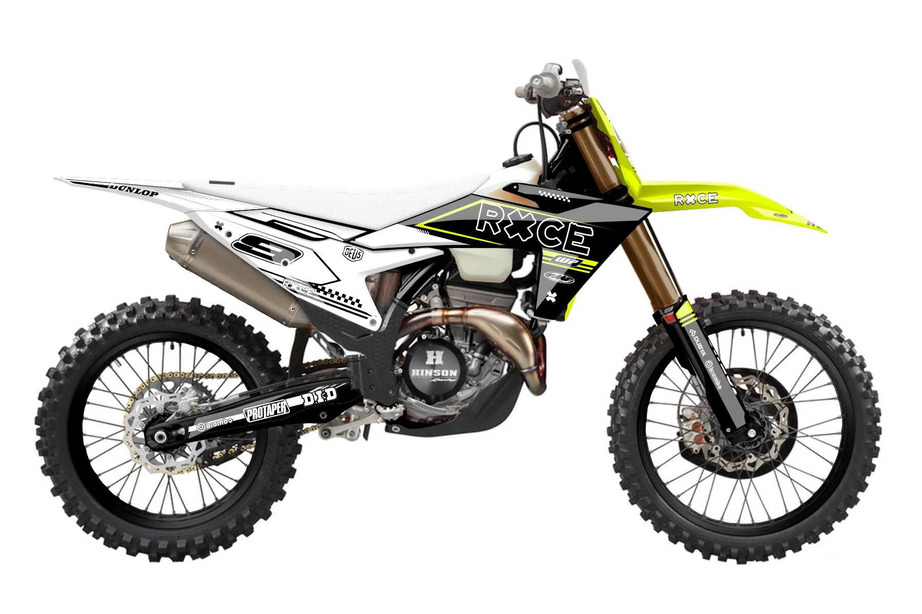 «Ride Neon» — готовый комплект графики серии Untucked для KTM Offroad Graphic Kit KTM XC-F 350 2023. В комплекте: графика на бак и боковые облицовки, крылья (переднее и заднее), передний щиток, номерные таблички, защита вилки. Материал: ПВХ-винил 80 мкр с холодной ламинацией 300 мкр, общая толщина 380 мкр; покрытие глянцевое или матовое на выбор. Устойчив к UV-излучению, воде, бензину и мойке высокого давления. Клей акриловый на сольвентной основе — постоянный, для гибких пластиков. На простых поверхностях монтируется без нагрева; для сложных изгибов рекомендуем фен. Этот пресет можно заказать как есть или взять за основу в конструкторе: поменять цвета, добавить стартовый номер и свой бренд. Производство — 3–5 рабочих дней, доставка по России СДЭКом или Почтой, по СНГ — курьерскими службами.