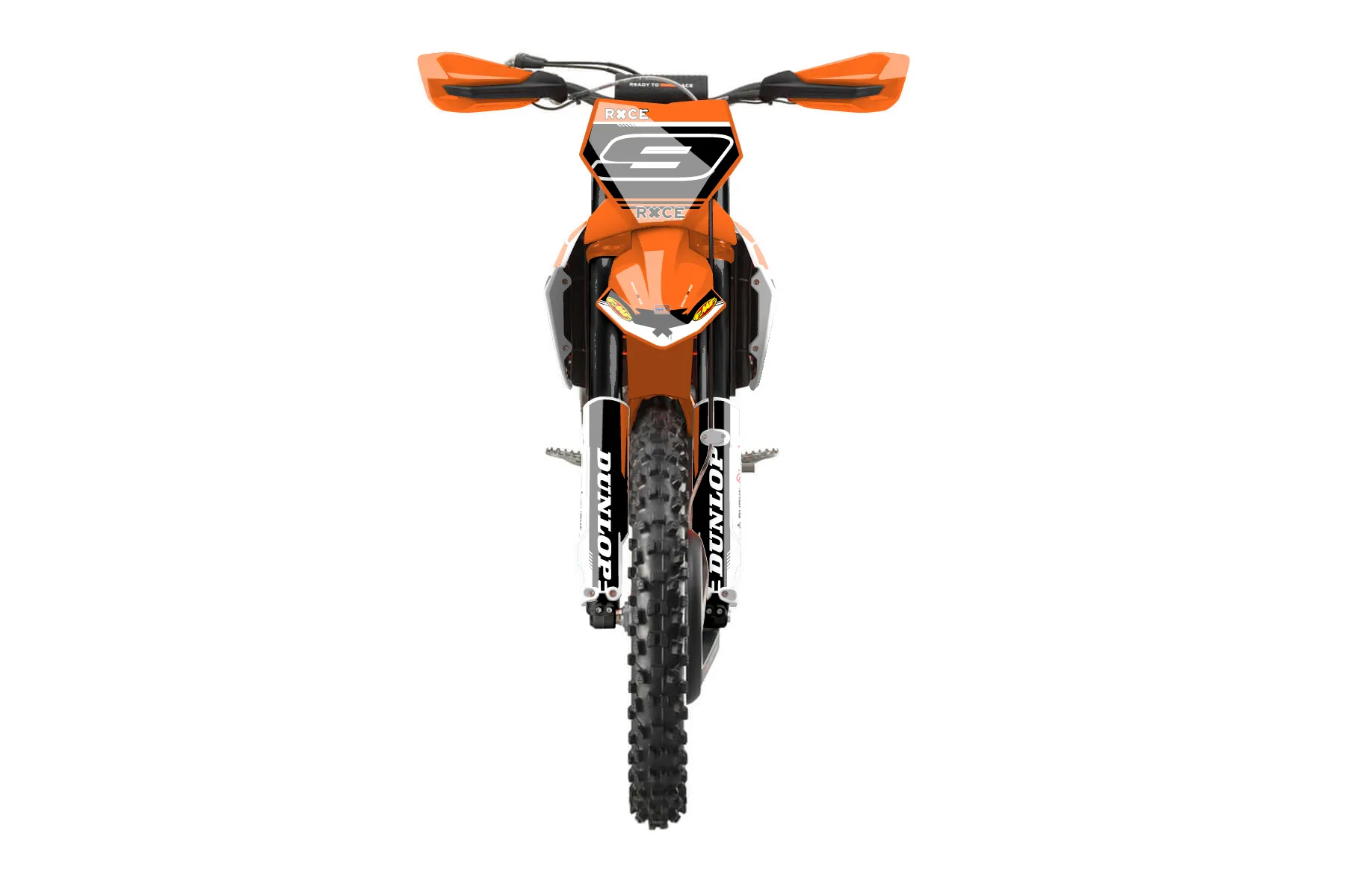 «Superb» — готовый комплект графики серии Untucked для KTM Offroad Graphic Kit KTM XC-F 350 2023. В комплекте: графика на бак и боковые облицовки, крылья (переднее и заднее), передний щиток, номерные таблички, защита вилки. Материал: ПВХ-винил 80 мкр с холодной ламинацией 300 мкр, общая толщина 380 мкр; покрытие глянцевое или матовое на выбор. Устойчив к UV-излучению, воде, бензину и мойке высокого давления. Клей акриловый на сольвентной основе — постоянный, для гибких пластиков. На простых поверхностях монтируется без нагрева; для сложных изгибов рекомендуем фен. Этот пресет можно заказать как есть или взять за основу в конструкторе: поменять цвета, добавить стартовый номер и свой бренд. Производство — 3–5 рабочих дней, доставка по России СДЭКом или Почтой, по СНГ — курьерскими службами.