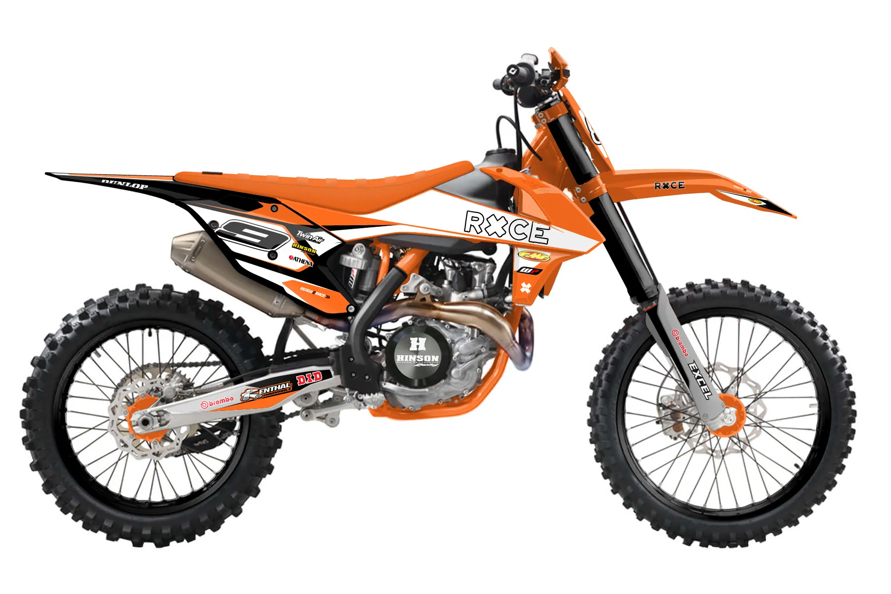 «Predicted» — готовый комплект графики серии Flow для KTM Offroad Graphic Kit KTM XC-F 450 2016. В комплекте: графика на бак и боковые облицовки, крылья (переднее и заднее), передний щиток, номерные таблички, защита вилки. Материал: ПВХ-винил 80 мкр с холодной ламинацией 300 мкр, общая толщина 380 мкр; покрытие глянцевое или матовое на выбор. Устойчив к UV-излучению, воде, бензину и мойке высокого давления. Клей акриловый на сольвентной основе — постоянный, для гибких пластиков. На простых поверхностях монтируется без нагрева; для сложных изгибов рекомендуем фен. Этот пресет можно заказать как есть или взять за основу в конструкторе: поменять цвета, добавить стартовый номер и свой бренд. Производство — 3–5 рабочих дней, доставка по России СДЭКом или Почтой, по СНГ — курьерскими службами.