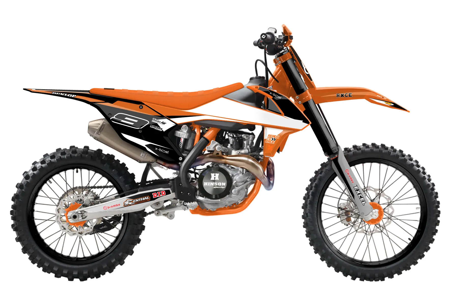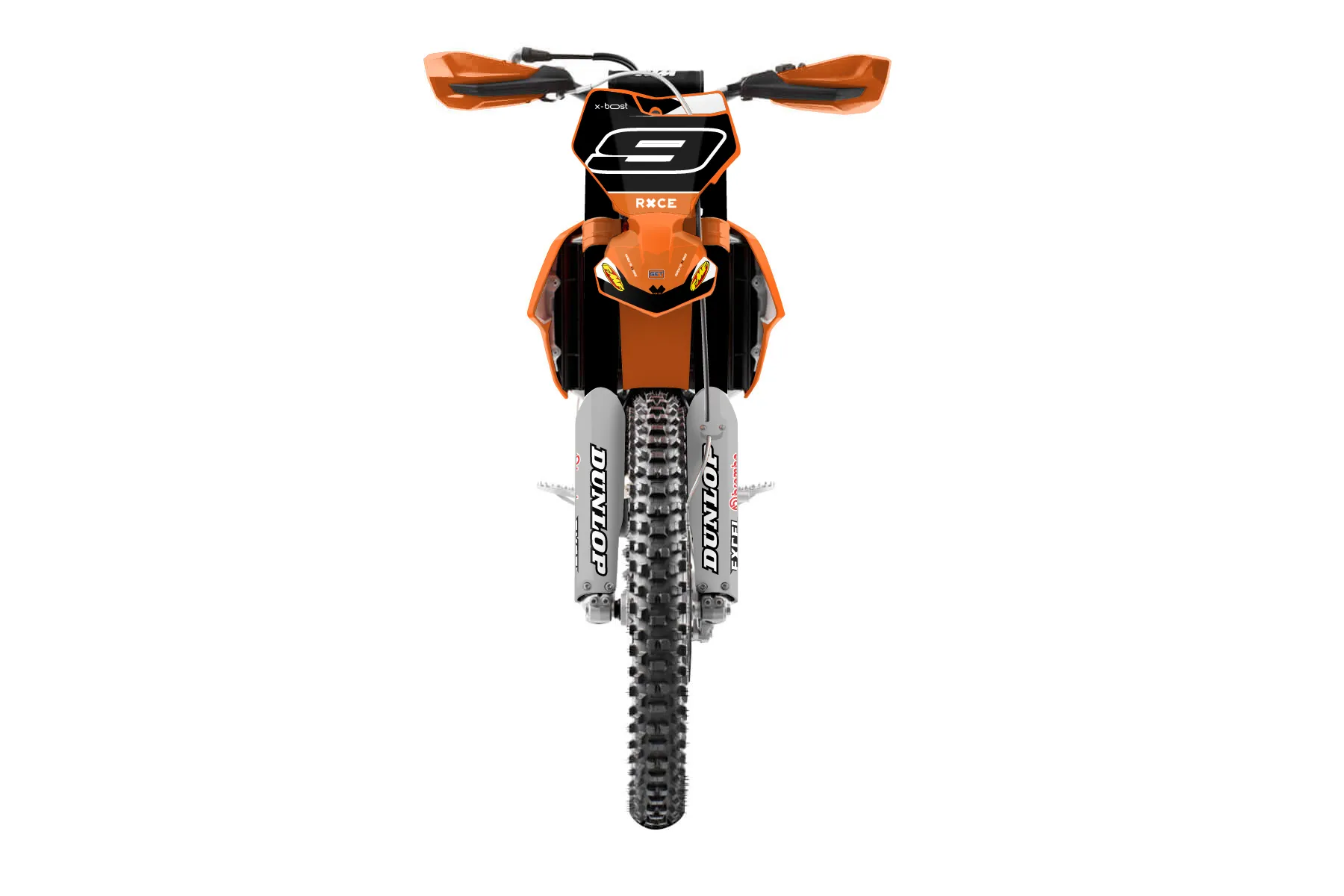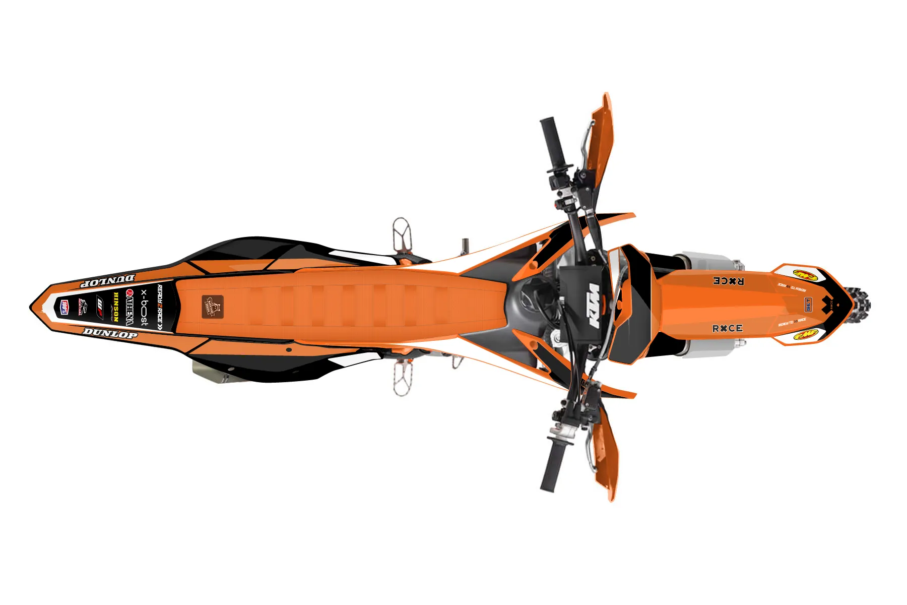 «Race» — готовый комплект графики серии Flow для KTM Offroad Graphic Kit KTM XC-F 450 2016. В комплекте: графика на бак и боковые облицовки, крылья (переднее и заднее), передний щиток, номерные таблички, защита вилки. Материал: ПВХ-винил 80 мкр с холодной ламинацией 300 мкр, общая толщина 380 мкр; покрытие глянцевое или матовое на выбор. Устойчив к UV-излучению, воде, бензину и мойке высокого давления. Клей акриловый на сольвентной основе — постоянный, для гибких пластиков. На простых поверхностях монтируется без нагрева; для сложных изгибов рекомендуем фен. Этот пресет можно заказать как есть или взять за основу в конструкторе: поменять цвета, добавить стартовый номер и свой бренд. Производство — 3–5 рабочих дней, доставка по России СДЭКом или Почтой, по СНГ — курьерскими службами.