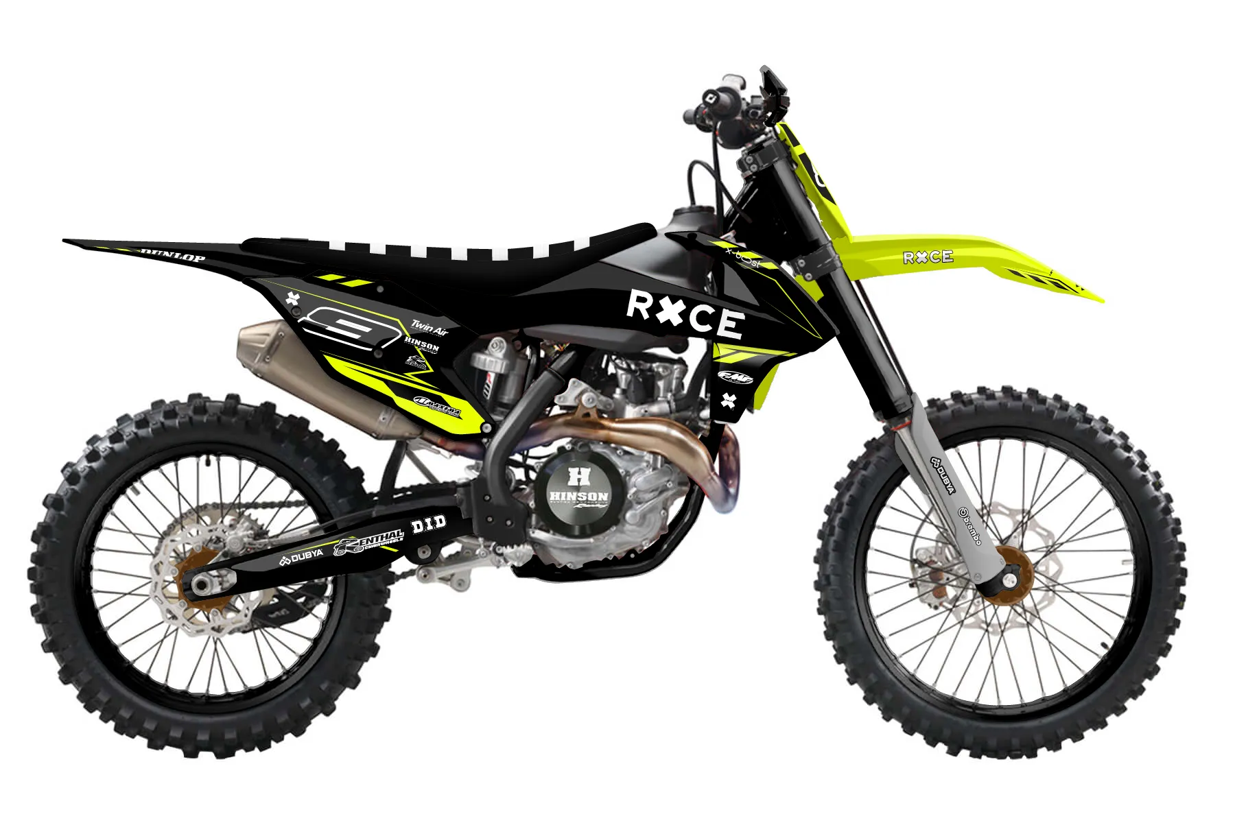 «Kitted Neon» — готовый комплект графики серии Maverick для KTM Offroad Graphic Kit KTM XC-F 450 2016. В комплекте: графика на бак и боковые облицовки, крылья (переднее и заднее), передний щиток, номерные таблички, защита вилки. Материал: ПВХ-винил 80 мкр с холодной ламинацией 300 мкр, общая толщина 380 мкр; покрытие глянцевое или матовое на выбор. Устойчив к UV-излучению, воде, бензину и мойке высокого давления. Клей акриловый на сольвентной основе — постоянный, для гибких пластиков. На простых поверхностях монтируется без нагрева; для сложных изгибов рекомендуем фен. Этот пресет можно заказать как есть или взять за основу в конструкторе: поменять цвета, добавить стартовый номер и свой бренд. Производство — 3–5 рабочих дней, доставка по России СДЭКом или Почтой, по СНГ — курьерскими службами.
