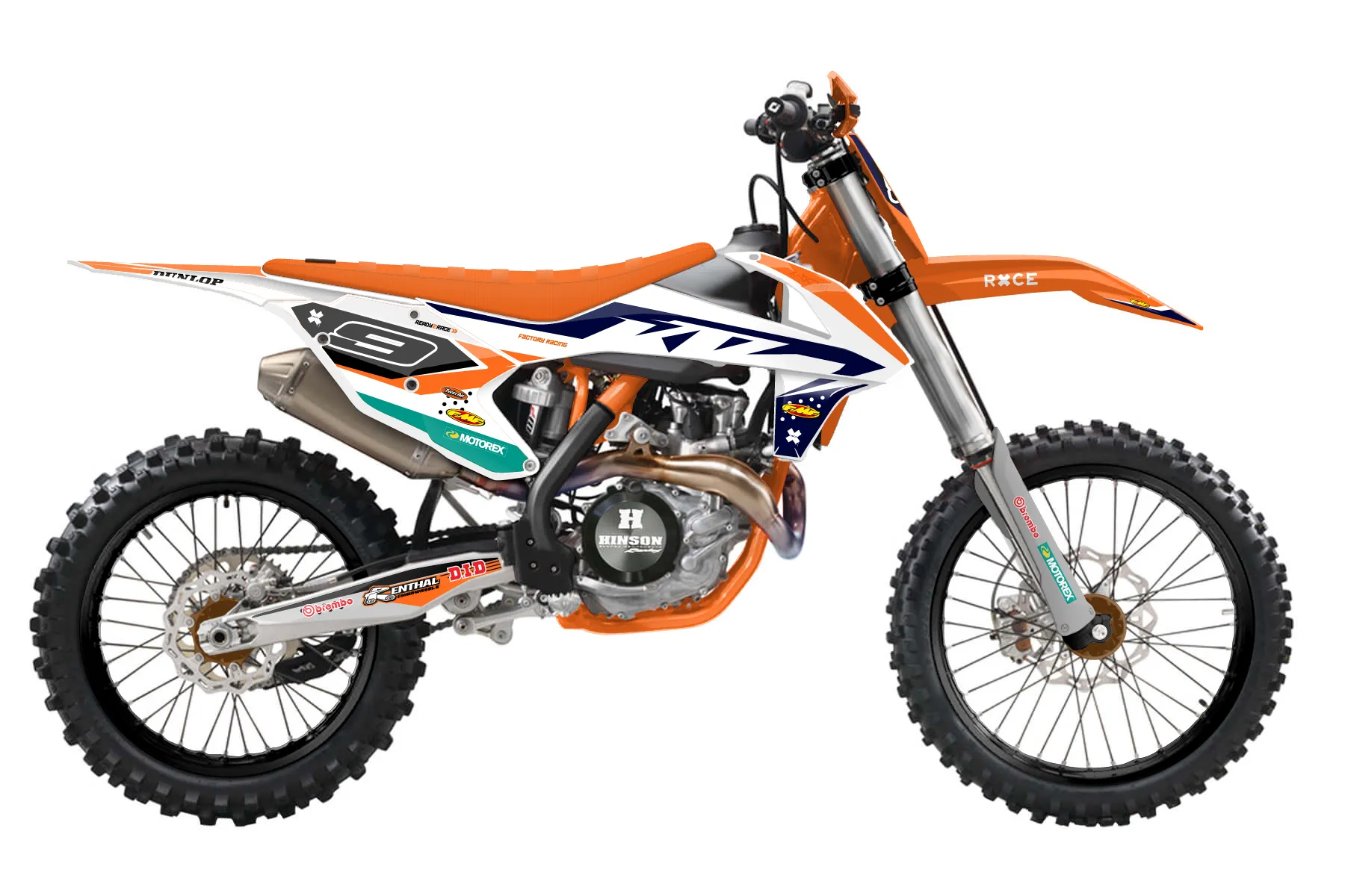 «Habit» — готовый комплект графики серии Staple для KTM Offroad Graphic Kit KTM XC-F 450 2016. В комплекте: графика на бак и боковые облицовки, крылья (переднее и заднее), передний щиток, номерные таблички, защита вилки. Материал: ПВХ-винил 80 мкр с холодной ламинацией 300 мкр, общая толщина 380 мкр; покрытие глянцевое или матовое на выбор. Устойчив к UV-излучению, воде, бензину и мойке высокого давления. Клей акриловый на сольвентной основе — постоянный, для гибких пластиков. На простых поверхностях монтируется без нагрева; для сложных изгибов рекомендуем фен. Этот пресет можно заказать как есть или взять за основу в конструкторе: поменять цвета, добавить стартовый номер и свой бренд. Производство — 3–5 рабочих дней, доставка по России СДЭКом или Почтой, по СНГ — курьерскими службами.