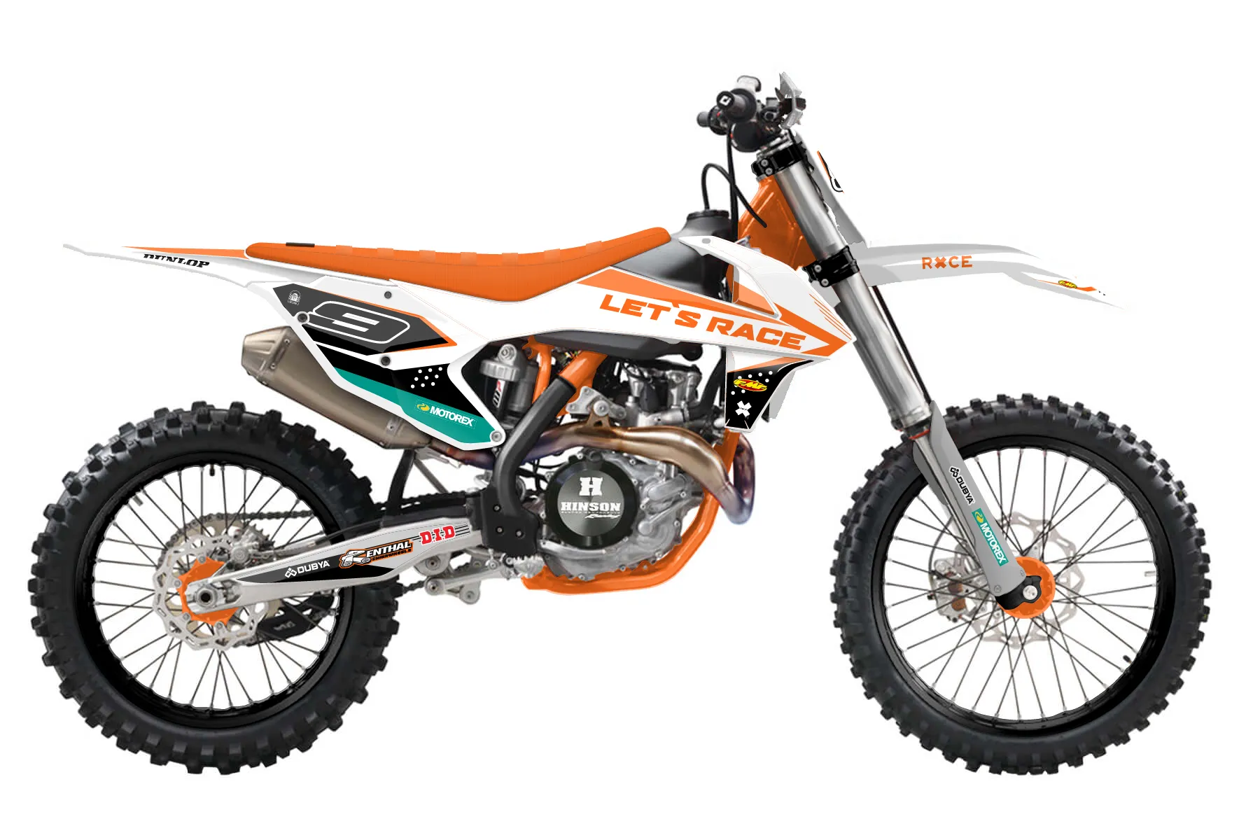 «Image» — готовый комплект графики серии Staple для KTM Offroad Graphic Kit KTM XC-F 450 2016. В комплекте: графика на бак и боковые облицовки, крылья (переднее и заднее), передний щиток, номерные таблички, защита вилки. Материал: ПВХ-винил 80 мкр с холодной ламинацией 300 мкр, общая толщина 380 мкр; покрытие глянцевое или матовое на выбор. Устойчив к UV-излучению, воде, бензину и мойке высокого давления. Клей акриловый на сольвентной основе — постоянный, для гибких пластиков. На простых поверхностях монтируется без нагрева; для сложных изгибов рекомендуем фен. Этот пресет можно заказать как есть или взять за основу в конструкторе: поменять цвета, добавить стартовый номер и свой бренд. Производство — 3–5 рабочих дней, доставка по России СДЭКом или Почтой, по СНГ — курьерскими службами.
