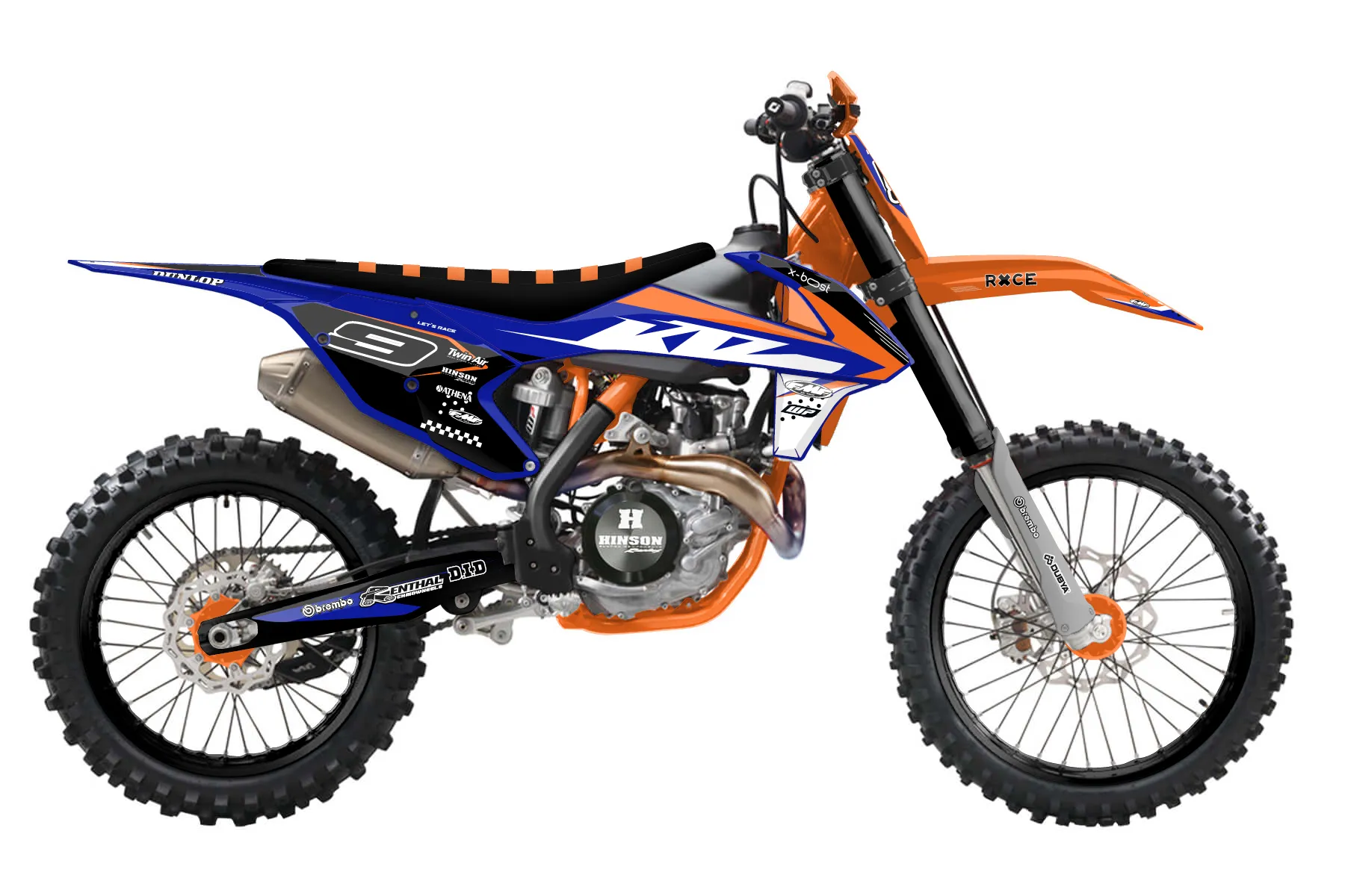 «New Era» — готовый комплект графики серии Staple для KTM Offroad Graphic Kit KTM XC-F 450 2016. В комплекте: графика на бак и боковые облицовки, крылья (переднее и заднее), передний щиток, номерные таблички, защита вилки. Материал: ПВХ-винил 80 мкр с холодной ламинацией 300 мкр, общая толщина 380 мкр; покрытие глянцевое или матовое на выбор. Устойчив к UV-излучению, воде, бензину и мойке высокого давления. Клей акриловый на сольвентной основе — постоянный, для гибких пластиков. На простых поверхностях монтируется без нагрева; для сложных изгибов рекомендуем фен. Этот пресет можно заказать как есть или взять за основу в конструкторе: поменять цвета, добавить стартовый номер и свой бренд. Производство — 3–5 рабочих дней, доставка по России СДЭКом или Почтой, по СНГ — курьерскими службами.