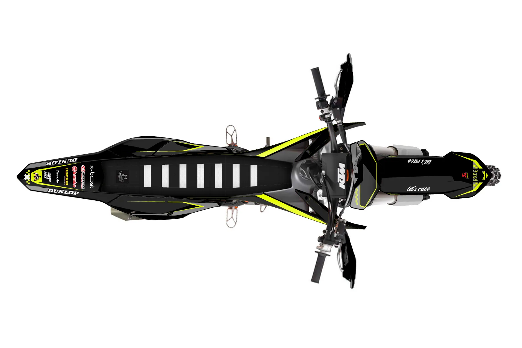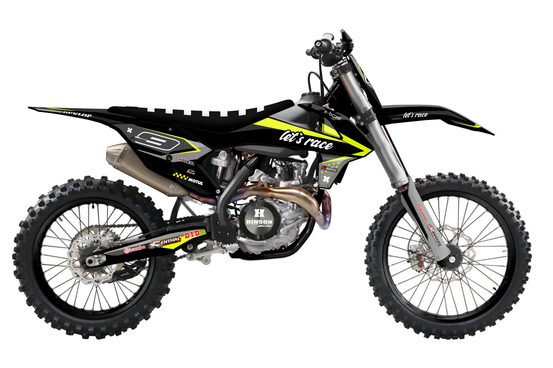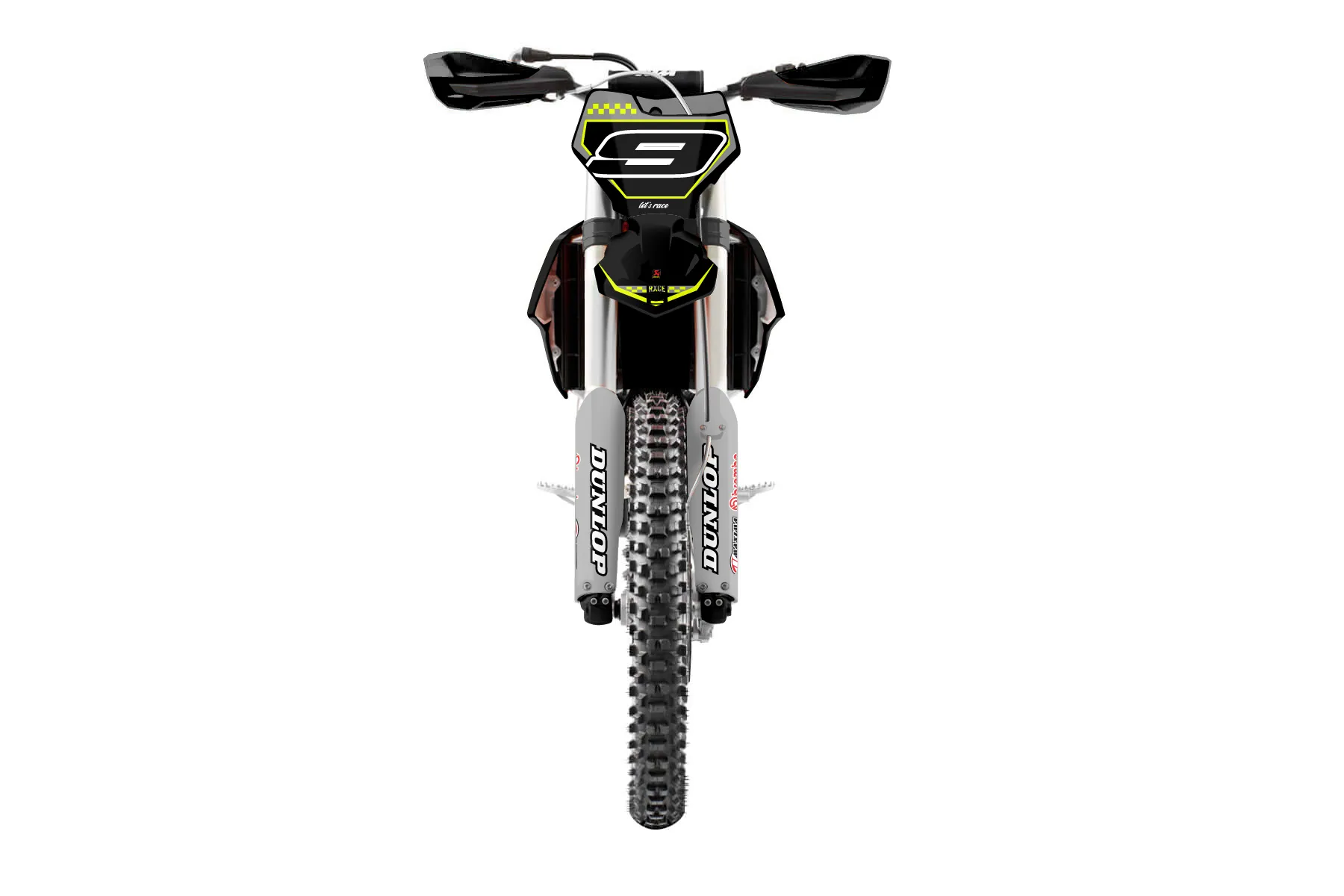 «Refuse Neon» — готовый комплект графики серии Staple для KTM Offroad Graphic Kit KTM XC-F 450 2016. В комплекте: графика на бак и боковые облицовки, крылья (переднее и заднее), передний щиток, номерные таблички, защита вилки. Материал: ПВХ-винил 80 мкр с холодной ламинацией 300 мкр, общая толщина 380 мкр; покрытие глянцевое или матовое на выбор. Устойчив к UV-излучению, воде, бензину и мойке высокого давления. Клей акриловый на сольвентной основе — постоянный, для гибких пластиков. На простых поверхностях монтируется без нагрева; для сложных изгибов рекомендуем фен. Этот пресет можно заказать как есть или взять за основу в конструкторе: поменять цвета, добавить стартовый номер и свой бренд. Производство — 3–5 рабочих дней, доставка по России СДЭКом или Почтой, по СНГ — курьерскими службами.