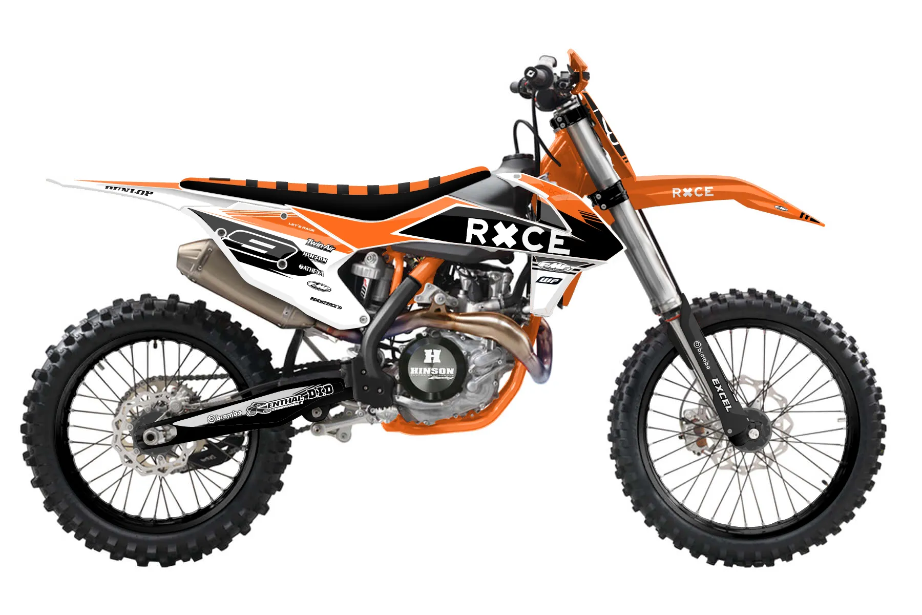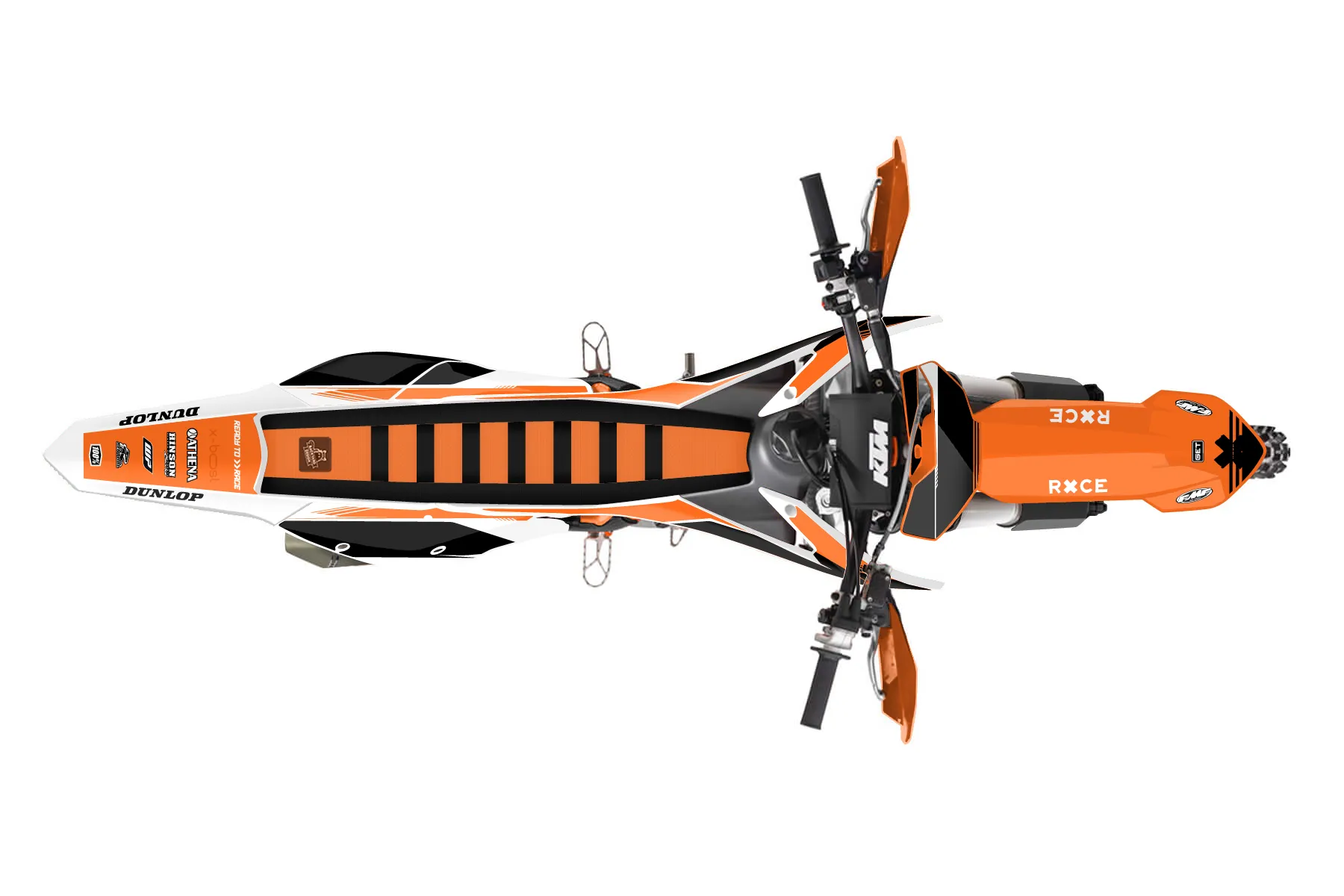 «Crowning» — готовый комплект графики серии Untucked для KTM Offroad Graphic Kit KTM XC-F 450 2016. В комплекте: графика на бак и боковые облицовки, крылья (переднее и заднее), передний щиток, номерные таблички, защита вилки. Материал: ПВХ-винил 80 мкр с холодной ламинацией 300 мкр, общая толщина 380 мкр; покрытие глянцевое или матовое на выбор. Устойчив к UV-излучению, воде, бензину и мойке высокого давления. Клей акриловый на сольвентной основе — постоянный, для гибких пластиков. На простых поверхностях монтируется без нагрева; для сложных изгибов рекомендуем фен. Этот пресет можно заказать как есть или взять за основу в конструкторе: поменять цвета, добавить стартовый номер и свой бренд. Производство — 3–5 рабочих дней, доставка по России СДЭКом или Почтой, по СНГ — курьерскими службами.