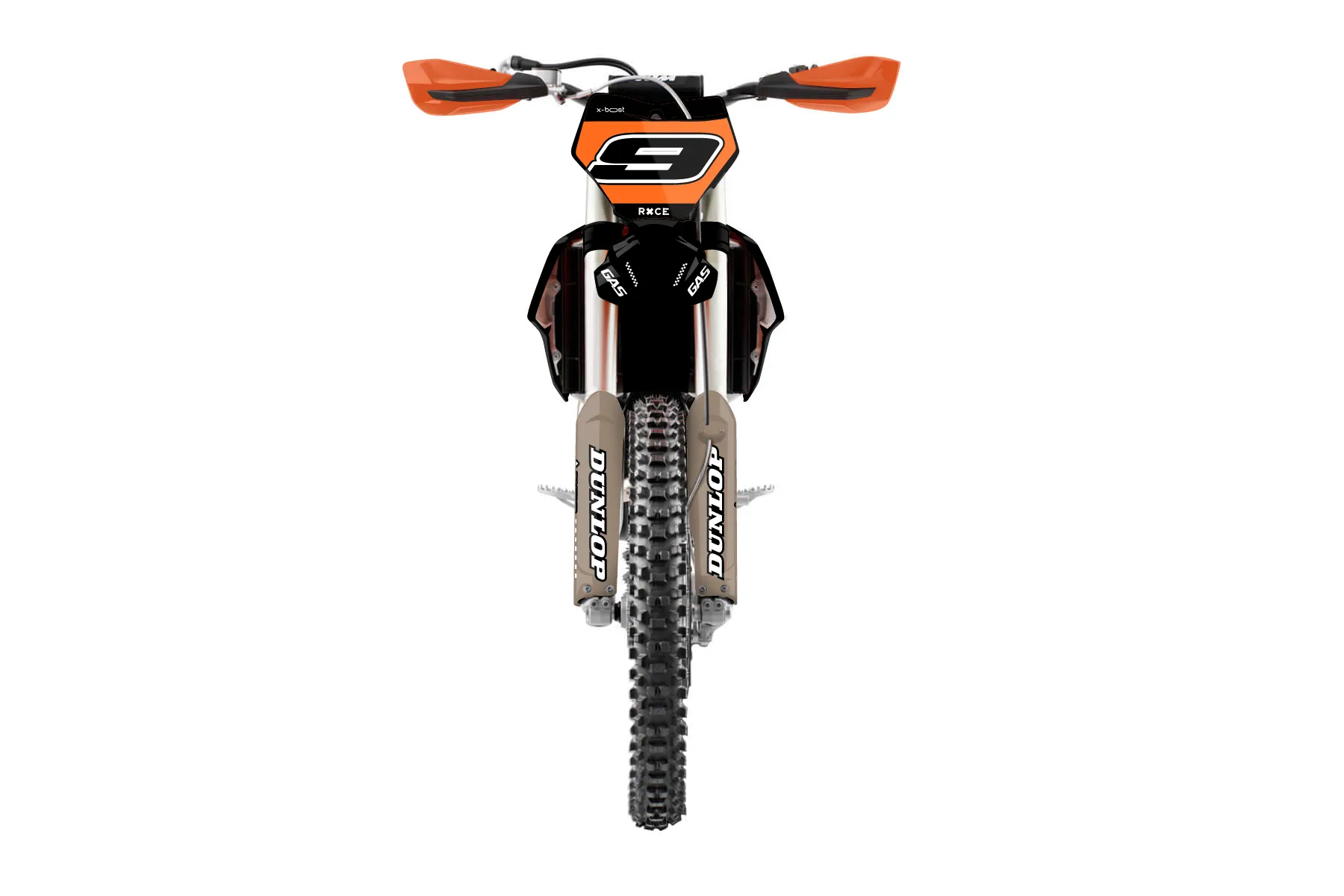 «Beyond» — готовый комплект графики серии Flow для KTM Offroad Graphic Kit KTM XC-F 450 2019. В комплекте: графика на бак и боковые облицовки, крылья (переднее и заднее), передний щиток, номерные таблички, защита вилки. Материал: ПВХ-винил 80 мкр с холодной ламинацией 300 мкр, общая толщина 380 мкр; покрытие глянцевое или матовое на выбор. Устойчив к UV-излучению, воде, бензину и мойке высокого давления. Клей акриловый на сольвентной основе — постоянный, для гибких пластиков. На простых поверхностях монтируется без нагрева; для сложных изгибов рекомендуем фен. Этот пресет можно заказать как есть или взять за основу в конструкторе: поменять цвета, добавить стартовый номер и свой бренд. Производство — 3–5 рабочих дней, доставка по России СДЭКом или Почтой, по СНГ — курьерскими службами.