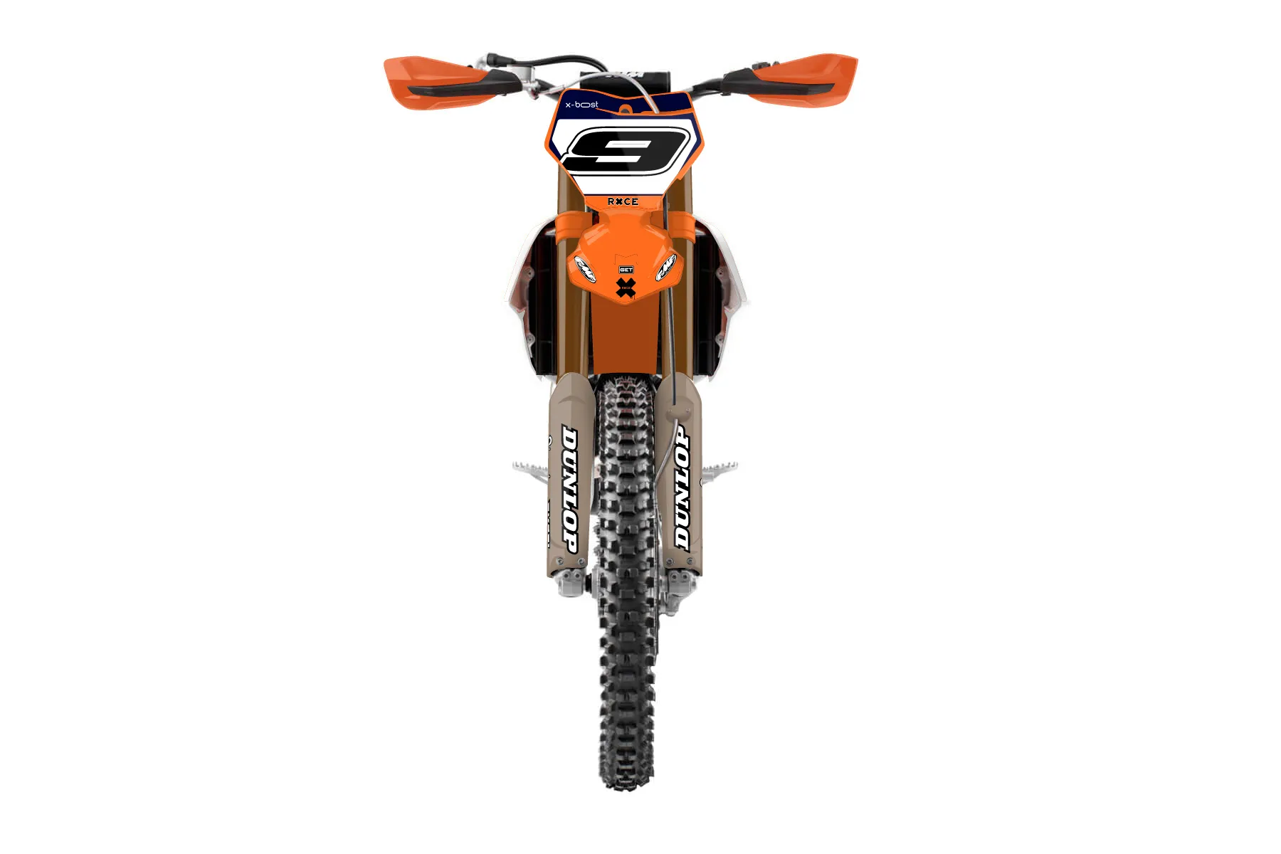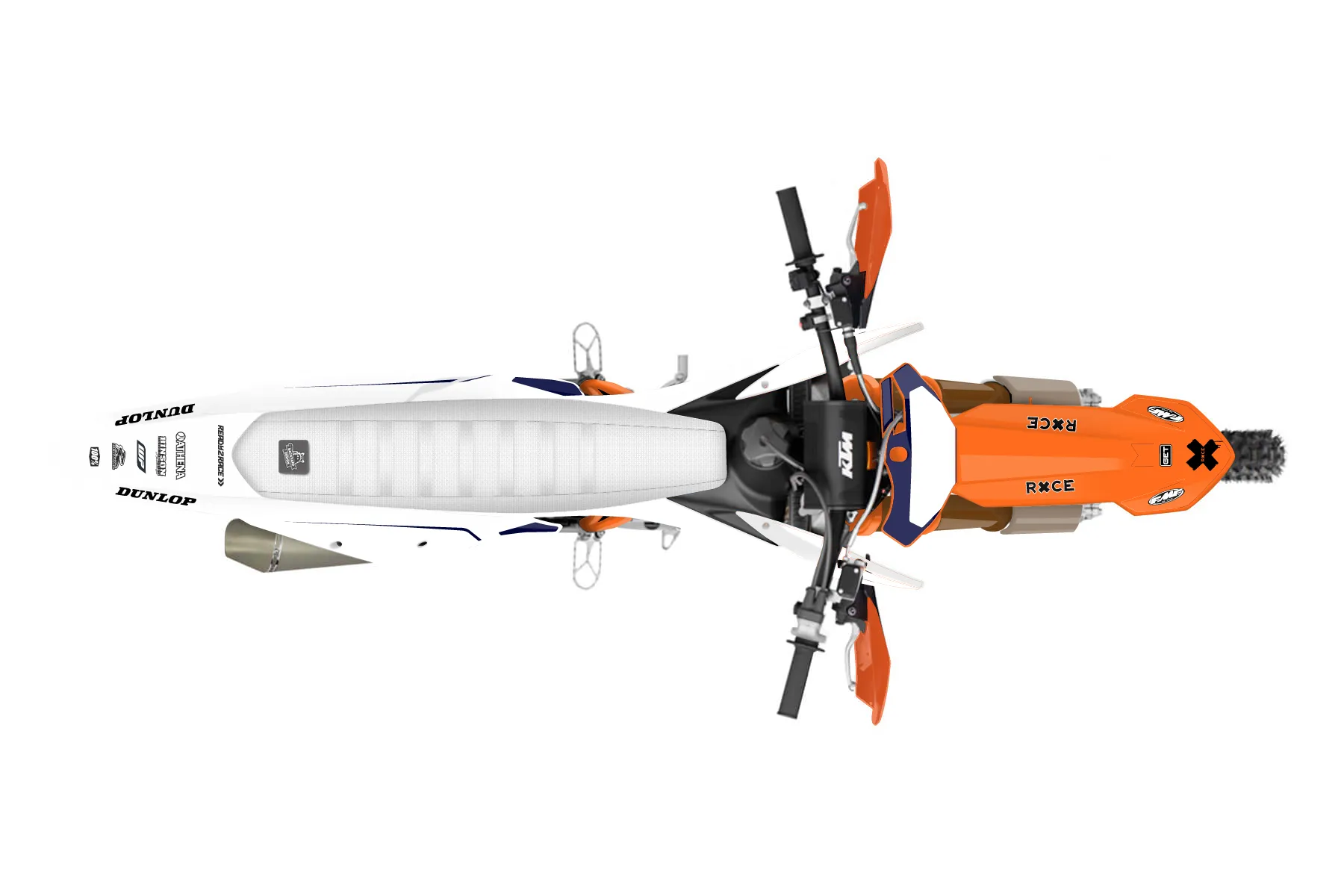 «Moto» — готовый комплект графики серии Flow для KTM Offroad Graphic Kit KTM XC-F 450 2019. В комплекте: графика на бак и боковые облицовки, крылья (переднее и заднее), передний щиток, номерные таблички, защита вилки. Материал: ПВХ-винил 80 мкр с холодной ламинацией 300 мкр, общая толщина 380 мкр; покрытие глянцевое или матовое на выбор. Устойчив к UV-излучению, воде, бензину и мойке высокого давления. Клей акриловый на сольвентной основе — постоянный, для гибких пластиков. На простых поверхностях монтируется без нагрева; для сложных изгибов рекомендуем фен. Этот пресет можно заказать как есть или взять за основу в конструкторе: поменять цвета, добавить стартовый номер и свой бренд. Производство — 3–5 рабочих дней, доставка по России СДЭКом или Почтой, по СНГ — курьерскими службами.