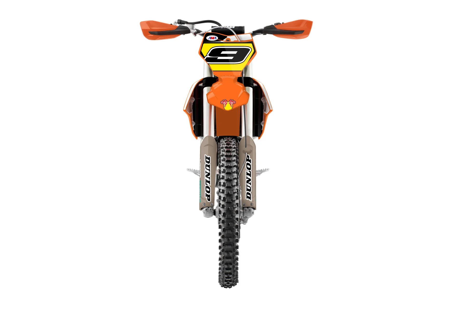 «OLLY» — готовый комплект графики серии Flow для KTM Offroad Graphic Kit KTM XC-F 450 2019. В комплекте: графика на бак и боковые облицовки, крылья (переднее и заднее), передний щиток, номерные таблички, защита вилки. Материал: ПВХ-винил 80 мкр с холодной ламинацией 300 мкр, общая толщина 380 мкр; покрытие глянцевое или матовое на выбор. Устойчив к UV-излучению, воде, бензину и мойке высокого давления. Клей акриловый на сольвентной основе — постоянный, для гибких пластиков. На простых поверхностях монтируется без нагрева; для сложных изгибов рекомендуем фен. Этот пресет можно заказать как есть или взять за основу в конструкторе: поменять цвета, добавить стартовый номер и свой бренд. Производство — 3–5 рабочих дней, доставка по России СДЭКом или Почтой, по СНГ — курьерскими службами.