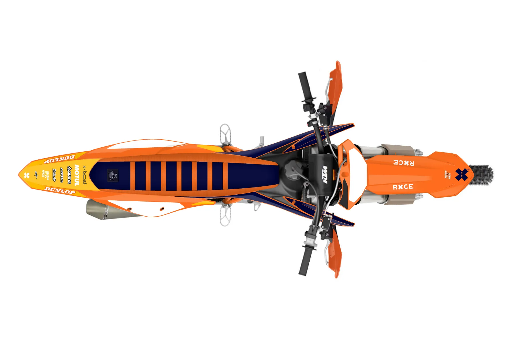 «Pixel» — готовый комплект графики серии Flow для KTM Offroad Graphic Kit KTM XC-F 450 2019. В комплекте: графика на бак и боковые облицовки, крылья (переднее и заднее), передний щиток, номерные таблички, защита вилки. Материал: ПВХ-винил 80 мкр с холодной ламинацией 300 мкр, общая толщина 380 мкр; покрытие глянцевое или матовое на выбор. Устойчив к UV-излучению, воде, бензину и мойке высокого давления. Клей акриловый на сольвентной основе — постоянный, для гибких пластиков. На простых поверхностях монтируется без нагрева; для сложных изгибов рекомендуем фен. Этот пресет можно заказать как есть или взять за основу в конструкторе: поменять цвета, добавить стартовый номер и свой бренд. Производство — 3–5 рабочих дней, доставка по России СДЭКом или Почтой, по СНГ — курьерскими службами.