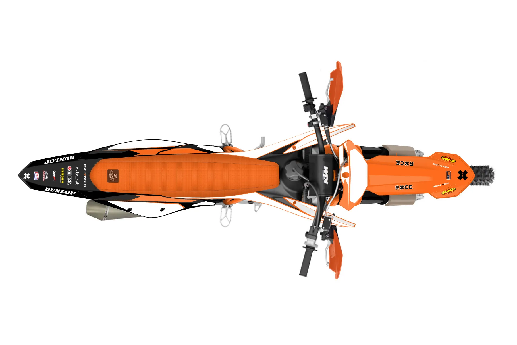 «Predicted» — готовый комплект графики серии Flow для KTM Offroad Graphic Kit KTM XC-F 450 2019. В комплекте: графика на бак и боковые облицовки, крылья (переднее и заднее), передний щиток, номерные таблички, защита вилки. Материал: ПВХ-винил 80 мкр с холодной ламинацией 300 мкр, общая толщина 380 мкр; покрытие глянцевое или матовое на выбор. Устойчив к UV-излучению, воде, бензину и мойке высокого давления. Клей акриловый на сольвентной основе — постоянный, для гибких пластиков. На простых поверхностях монтируется без нагрева; для сложных изгибов рекомендуем фен. Этот пресет можно заказать как есть или взять за основу в конструкторе: поменять цвета, добавить стартовый номер и свой бренд. Производство — 3–5 рабочих дней, доставка по России СДЭКом или Почтой, по СНГ — курьерскими службами.