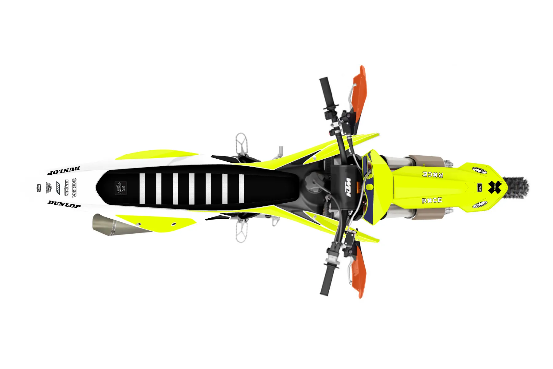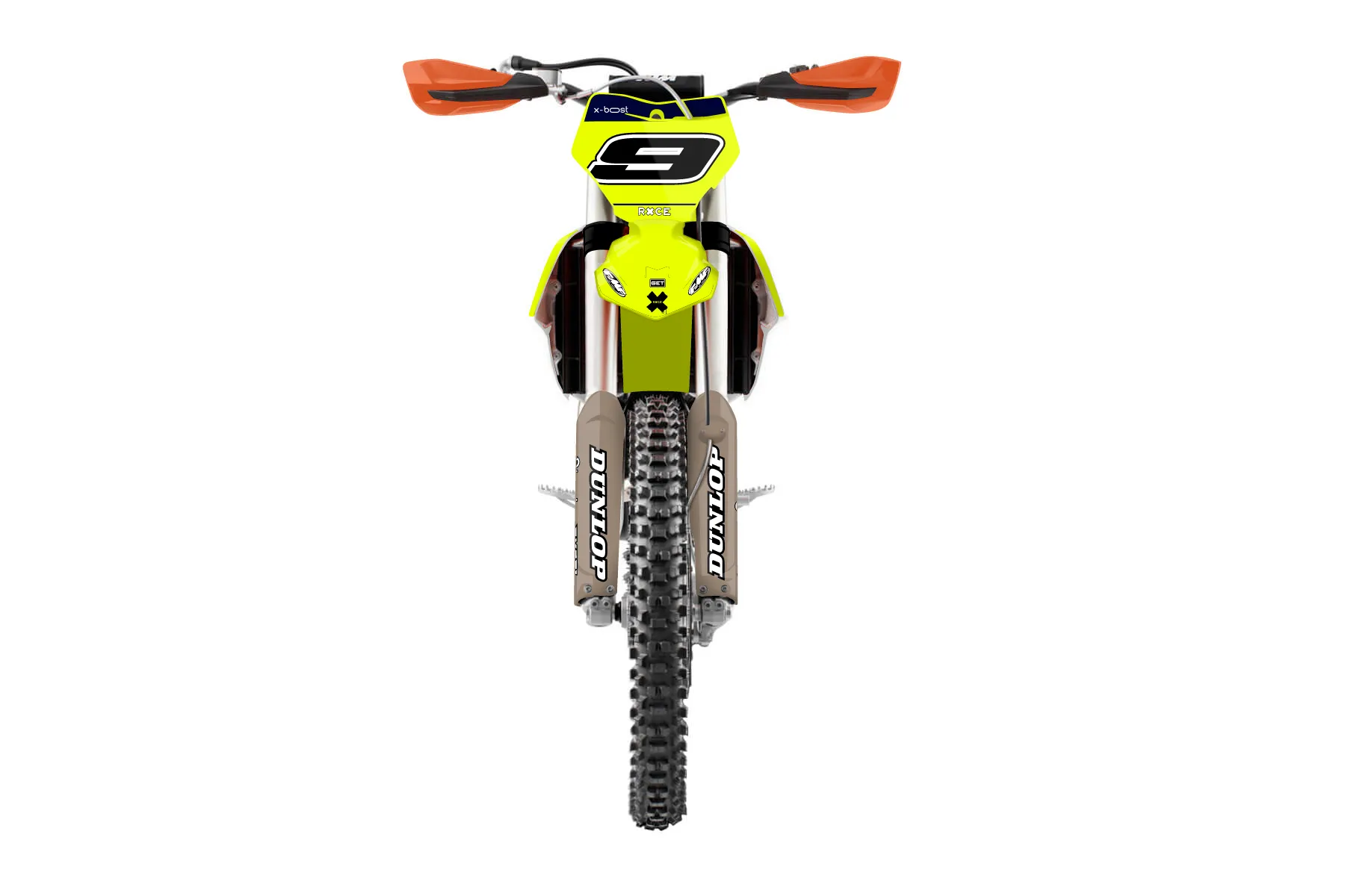 «Rise Fluo» — готовый комплект графики серии Flow для KTM Offroad Graphic Kit KTM XC-F 450 2019. В комплекте: графика на бак и боковые облицовки, крылья (переднее и заднее), передний щиток, номерные таблички, защита вилки. Материал: ПВХ-винил 80 мкр с холодной ламинацией 300 мкр, общая толщина 380 мкр; покрытие глянцевое или матовое на выбор. Устойчив к UV-излучению, воде, бензину и мойке высокого давления. Клей акриловый на сольвентной основе — постоянный, для гибких пластиков. На простых поверхностях монтируется без нагрева; для сложных изгибов рекомендуем фен. Этот пресет можно заказать как есть или взять за основу в конструкторе: поменять цвета, добавить стартовый номер и свой бренд. Производство — 3–5 рабочих дней, доставка по России СДЭКом или Почтой, по СНГ — курьерскими службами.