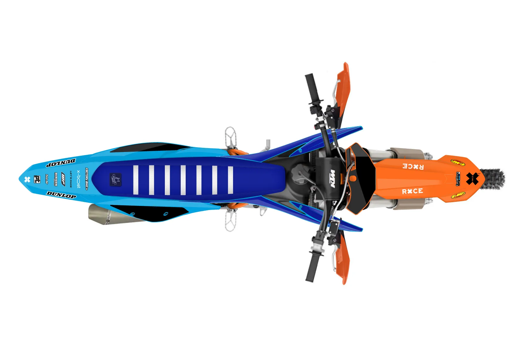 «Signature» — готовый комплект графики серии Flow для KTM Offroad Graphic Kit KTM XC-F 450 2019. В комплекте: графика на бак и боковые облицовки, крылья (переднее и заднее), передний щиток, номерные таблички, защита вилки. Материал: ПВХ-винил 80 мкр с холодной ламинацией 300 мкр, общая толщина 380 мкр; покрытие глянцевое или матовое на выбор. Устойчив к UV-излучению, воде, бензину и мойке высокого давления. Клей акриловый на сольвентной основе — постоянный, для гибких пластиков. На простых поверхностях монтируется без нагрева; для сложных изгибов рекомендуем фен. Этот пресет можно заказать как есть или взять за основу в конструкторе: поменять цвета, добавить стартовый номер и свой бренд. Производство — 3–5 рабочих дней, доставка по России СДЭКом или Почтой, по СНГ — курьерскими службами.