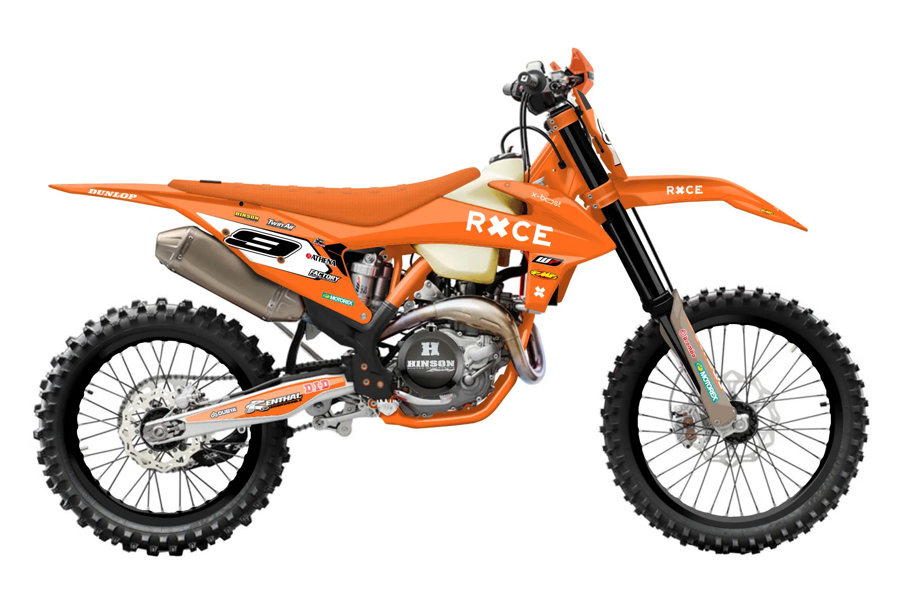 «Slice» — готовый комплект графики серии Flow для KTM Offroad Graphic Kit KTM XC-F 450 2019. В комплекте: графика на бак и боковые облицовки, крылья (переднее и заднее), передний щиток, номерные таблички, защита вилки. Материал: ПВХ-винил 80 мкр с холодной ламинацией 300 мкр, общая толщина 380 мкр; покрытие глянцевое или матовое на выбор. Устойчив к UV-излучению, воде, бензину и мойке высокого давления. Клей акриловый на сольвентной основе — постоянный, для гибких пластиков. На простых поверхностях монтируется без нагрева; для сложных изгибов рекомендуем фен. Этот пресет можно заказать как есть или взять за основу в конструкторе: поменять цвета, добавить стартовый номер и свой бренд. Производство — 3–5 рабочих дней, доставка по России СДЭКом или Почтой, по СНГ — курьерскими службами.
