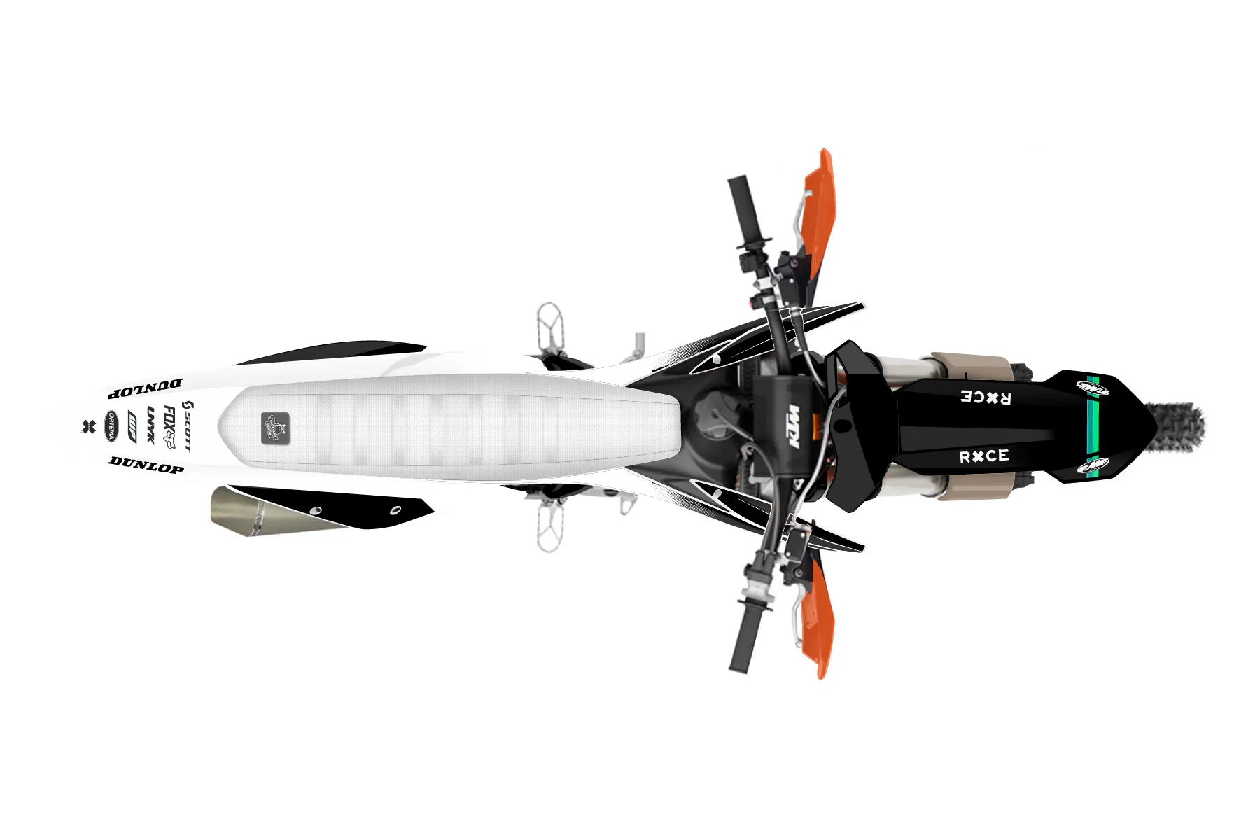 «Champ» — готовый комплект графики серии Maverick для KTM Offroad Graphic Kit KTM XC-F 450 2019. В комплекте: графика на бак и боковые облицовки, крылья (переднее и заднее), передний щиток, номерные таблички, защита вилки. Материал: ПВХ-винил 80 мкр с холодной ламинацией 300 мкр, общая толщина 380 мкр; покрытие глянцевое или матовое на выбор. Устойчив к UV-излучению, воде, бензину и мойке высокого давления. Клей акриловый на сольвентной основе — постоянный, для гибких пластиков. На простых поверхностях монтируется без нагрева; для сложных изгибов рекомендуем фен. Этот пресет можно заказать как есть или взять за основу в конструкторе: поменять цвета, добавить стартовый номер и свой бренд. Производство — 3–5 рабочих дней, доставка по России СДЭКом или Почтой, по СНГ — курьерскими службами.