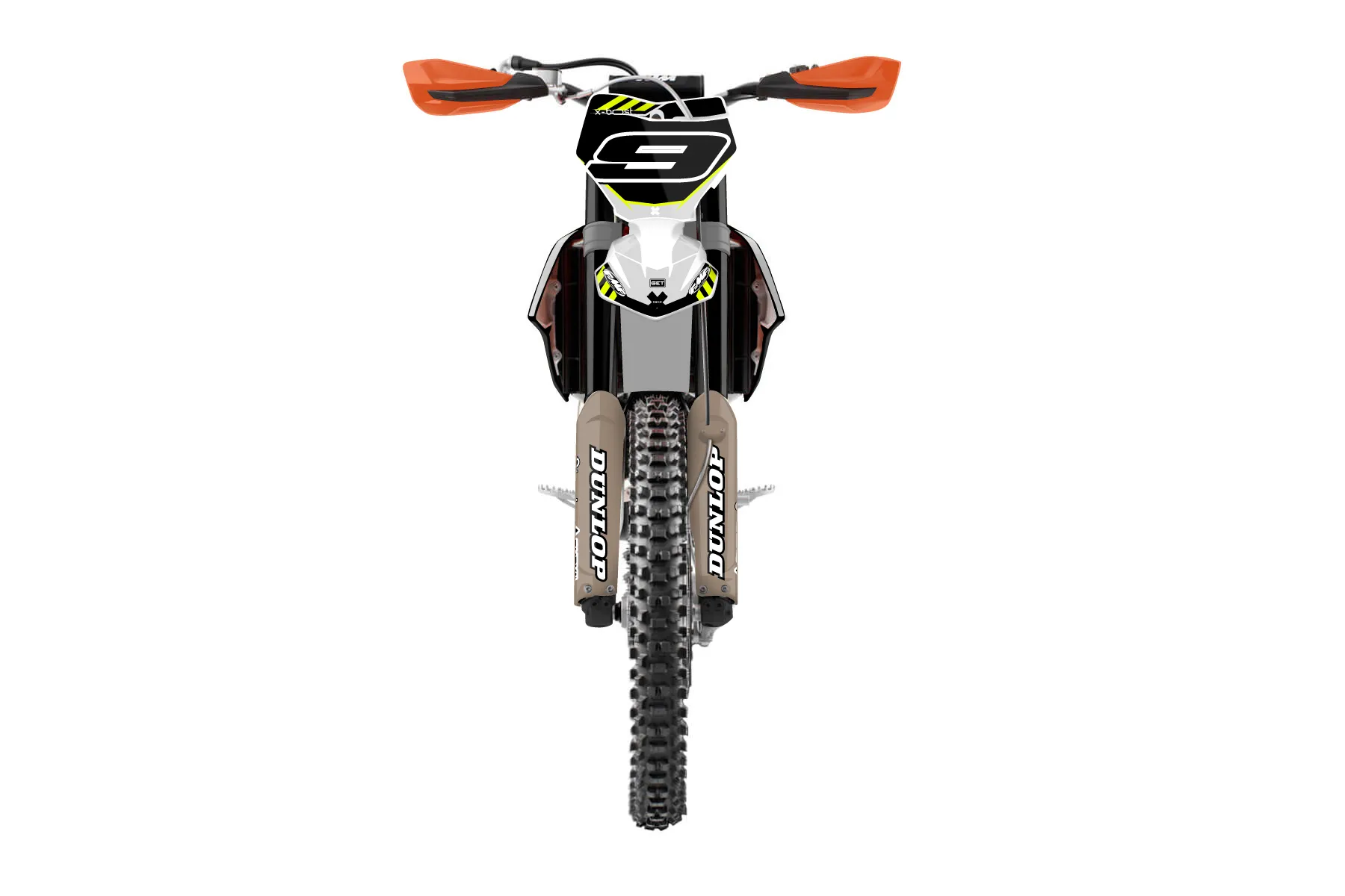 «Daze Fluo» — готовый комплект графики серии Maverick для KTM Offroad Graphic Kit KTM XC-F 450 2019. В комплекте: графика на бак и боковые облицовки, крылья (переднее и заднее), передний щиток, номерные таблички, защита вилки. Материал: ПВХ-винил 80 мкр с холодной ламинацией 300 мкр, общая толщина 380 мкр; покрытие глянцевое или матовое на выбор. Устойчив к UV-излучению, воде, бензину и мойке высокого давления. Клей акриловый на сольвентной основе — постоянный, для гибких пластиков. На простых поверхностях монтируется без нагрева; для сложных изгибов рекомендуем фен. Этот пресет можно заказать как есть или взять за основу в конструкторе: поменять цвета, добавить стартовый номер и свой бренд. Производство — 3–5 рабочих дней, доставка по России СДЭКом или Почтой, по СНГ — курьерскими службами.