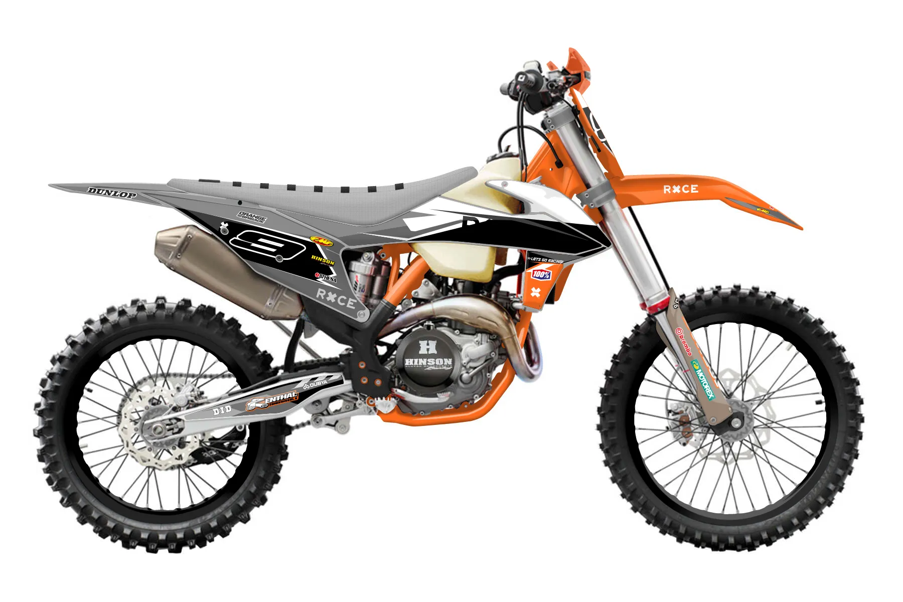 «Eleven» — готовый комплект графики серии Maverick для KTM Offroad Graphic Kit KTM XC-F 450 2019. В комплекте: графика на бак и боковые облицовки, крылья (переднее и заднее), передний щиток, номерные таблички, защита вилки. Материал: ПВХ-винил 80 мкр с холодной ламинацией 300 мкр, общая толщина 380 мкр; покрытие глянцевое или матовое на выбор. Устойчив к UV-излучению, воде, бензину и мойке высокого давления. Клей акриловый на сольвентной основе — постоянный, для гибких пластиков. На простых поверхностях монтируется без нагрева; для сложных изгибов рекомендуем фен. Этот пресет можно заказать как есть или взять за основу в конструкторе: поменять цвета, добавить стартовый номер и свой бренд. Производство — 3–5 рабочих дней, доставка по России СДЭКом или Почтой, по СНГ — курьерскими службами.