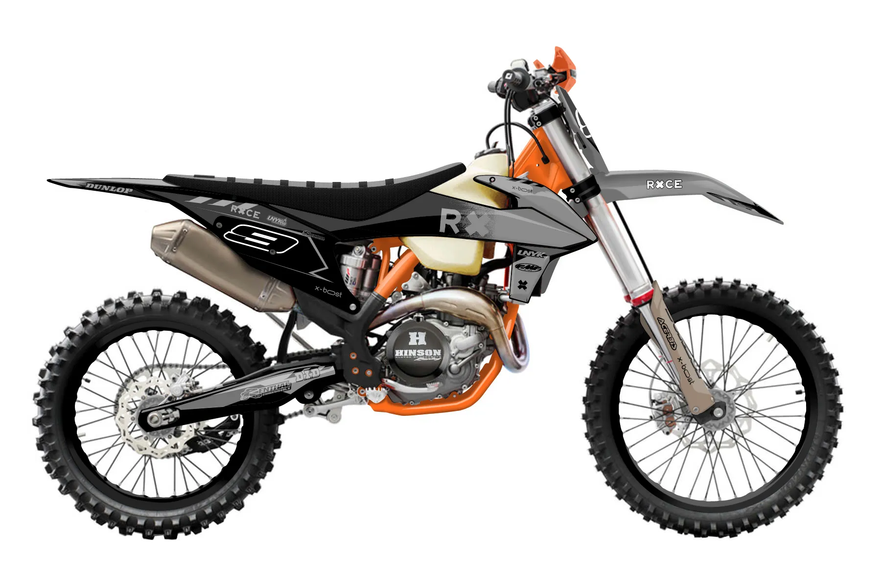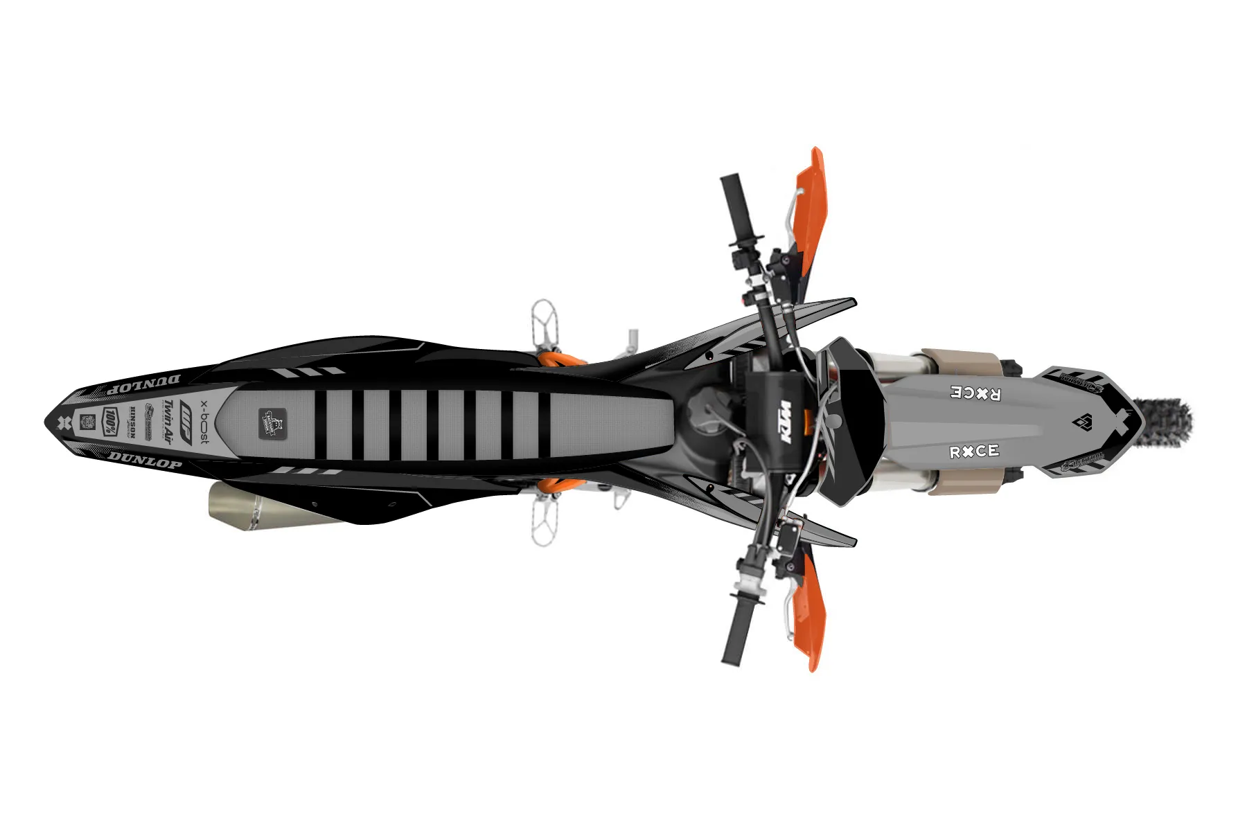 «Grip» — готовый комплект графики серии Maverick для KTM Offroad Graphic Kit KTM XC-F 450 2019. В комплекте: графика на бак и боковые облицовки, крылья (переднее и заднее), передний щиток, номерные таблички, защита вилки. Материал: ПВХ-винил 80 мкр с холодной ламинацией 300 мкр, общая толщина 380 мкр; покрытие глянцевое или матовое на выбор. Устойчив к UV-излучению, воде, бензину и мойке высокого давления. Клей акриловый на сольвентной основе — постоянный, для гибких пластиков. На простых поверхностях монтируется без нагрева; для сложных изгибов рекомендуем фен. Этот пресет можно заказать как есть или взять за основу в конструкторе: поменять цвета, добавить стартовый номер и свой бренд. Производство — 3–5 рабочих дней, доставка по России СДЭКом или Почтой, по СНГ — курьерскими службами.