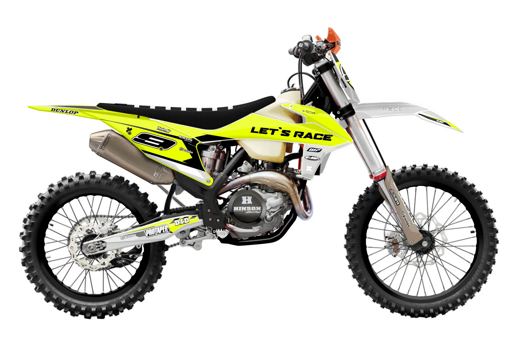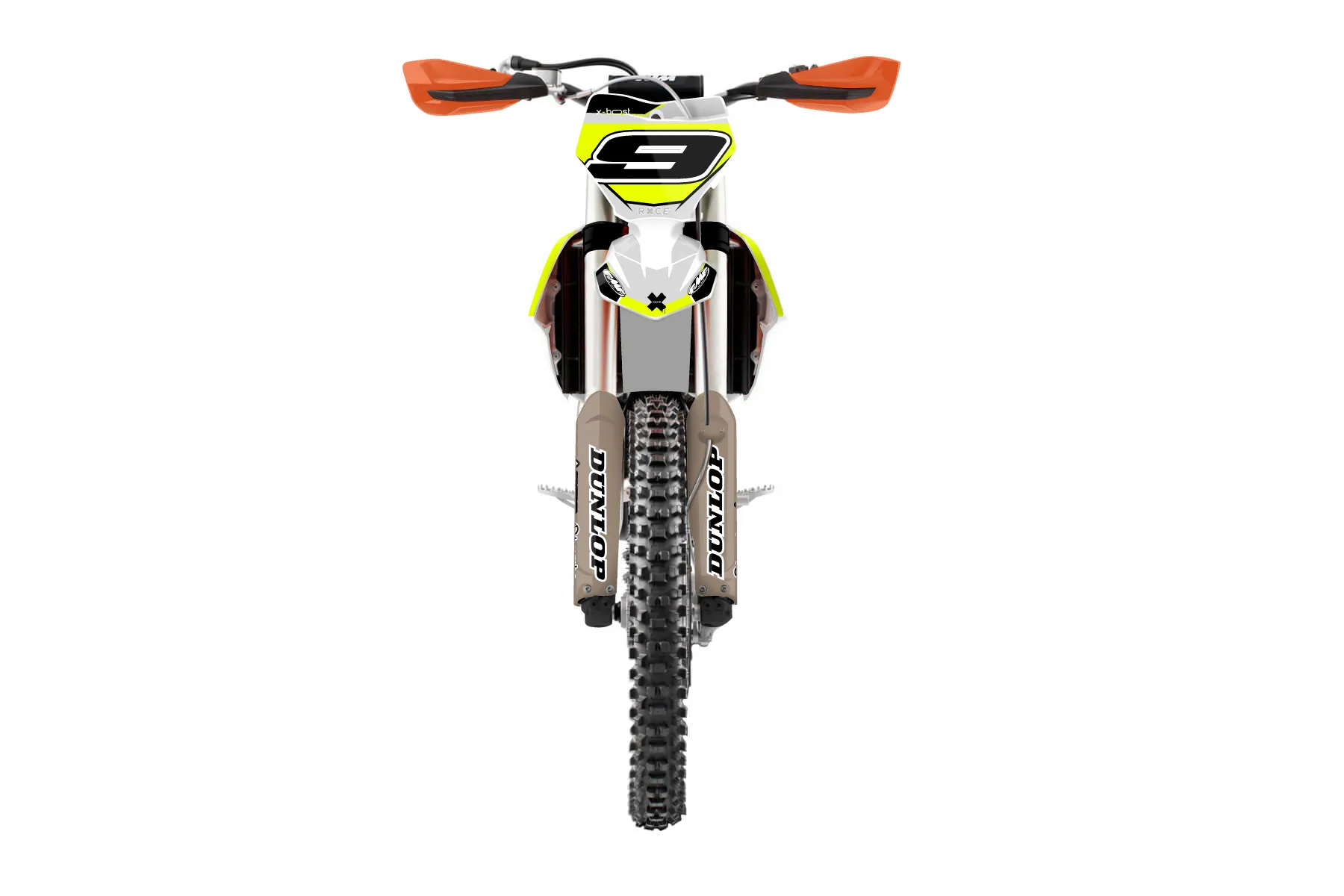 «Ryder Neon» — готовый комплект графики серии Maverick для KTM Offroad Graphic Kit KTM XC-F 450 2019. В комплекте: графика на бак и боковые облицовки, крылья (переднее и заднее), передний щиток, номерные таблички, защита вилки. Материал: ПВХ-винил 80 мкр с холодной ламинацией 300 мкр, общая толщина 380 мкр; покрытие глянцевое или матовое на выбор. Устойчив к UV-излучению, воде, бензину и мойке высокого давления. Клей акриловый на сольвентной основе — постоянный, для гибких пластиков. На простых поверхностях монтируется без нагрева; для сложных изгибов рекомендуем фен. Этот пресет можно заказать как есть или взять за основу в конструкторе: поменять цвета, добавить стартовый номер и свой бренд. Производство — 3–5 рабочих дней, доставка по России СДЭКом или Почтой, по СНГ — курьерскими службами.