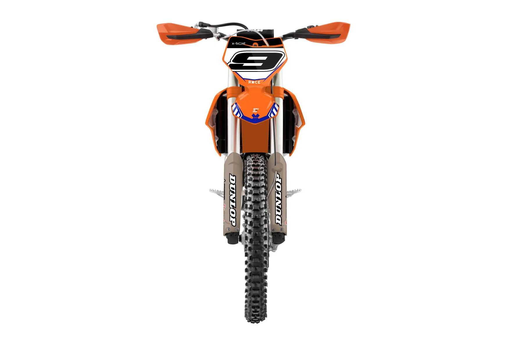 «Showtime» — готовый комплект графики серии Maverick для KTM Offroad Graphic Kit KTM XC-F 450 2019. В комплекте: графика на бак и боковые облицовки, крылья (переднее и заднее), передний щиток, номерные таблички, защита вилки. Материал: ПВХ-винил 80 мкр с холодной ламинацией 300 мкр, общая толщина 380 мкр; покрытие глянцевое или матовое на выбор. Устойчив к UV-излучению, воде, бензину и мойке высокого давления. Клей акриловый на сольвентной основе — постоянный, для гибких пластиков. На простых поверхностях монтируется без нагрева; для сложных изгибов рекомендуем фен. Этот пресет можно заказать как есть или взять за основу в конструкторе: поменять цвета, добавить стартовый номер и свой бренд. Производство — 3–5 рабочих дней, доставка по России СДЭКом или Почтой, по СНГ — курьерскими службами.