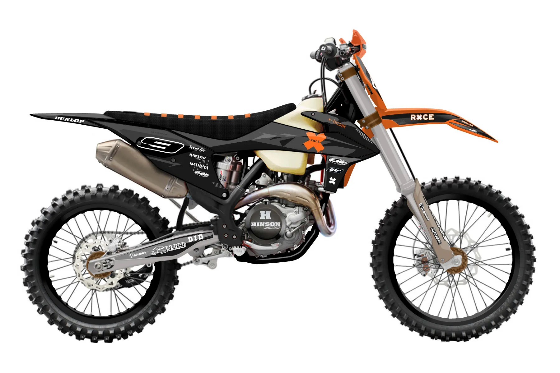 «Incomplete» — готовый комплект графики серии Staple для KTM Offroad Graphic Kit KTM XC-F 450 2019. В комплекте: графика на бак и боковые облицовки, крылья (переднее и заднее), передний щиток, номерные таблички, защита вилки. Материал: ПВХ-винил 80 мкр с холодной ламинацией 300 мкр, общая толщина 380 мкр; покрытие глянцевое или матовое на выбор. Устойчив к UV-излучению, воде, бензину и мойке высокого давления. Клей акриловый на сольвентной основе — постоянный, для гибких пластиков. На простых поверхностях монтируется без нагрева; для сложных изгибов рекомендуем фен. Этот пресет можно заказать как есть или взять за основу в конструкторе: поменять цвета, добавить стартовый номер и свой бренд. Производство — 3–5 рабочих дней, доставка по России СДЭКом или Почтой, по СНГ — курьерскими службами.