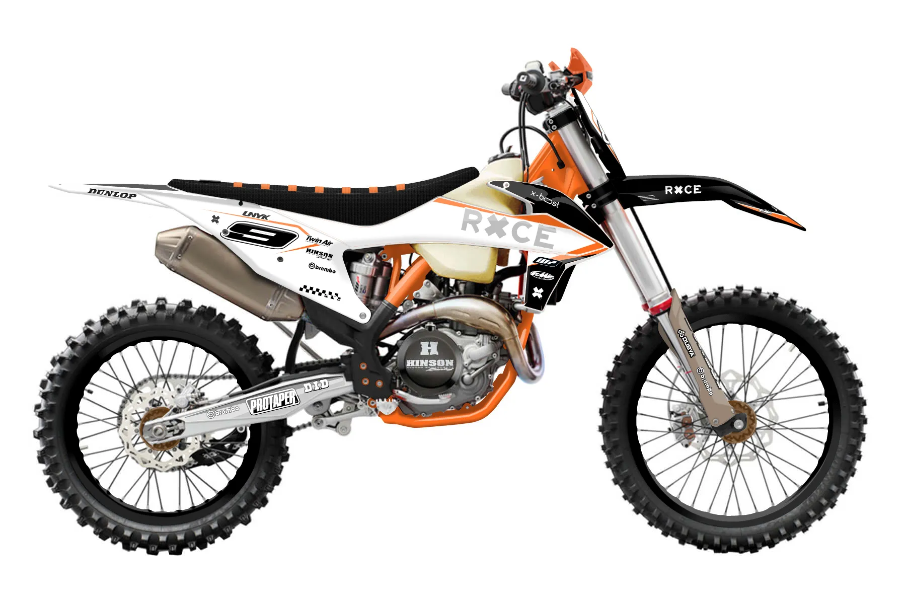 «Optical» — готовый комплект графики серии Staple для KTM Offroad Graphic Kit KTM XC-F 450 2019. В комплекте: графика на бак и боковые облицовки, крылья (переднее и заднее), передний щиток, номерные таблички, защита вилки. Материал: ПВХ-винил 80 мкр с холодной ламинацией 300 мкр, общая толщина 380 мкр; покрытие глянцевое или матовое на выбор. Устойчив к UV-излучению, воде, бензину и мойке высокого давления. Клей акриловый на сольвентной основе — постоянный, для гибких пластиков. На простых поверхностях монтируется без нагрева; для сложных изгибов рекомендуем фен. Этот пресет можно заказать как есть или взять за основу в конструкторе: поменять цвета, добавить стартовый номер и свой бренд. Производство — 3–5 рабочих дней, доставка по России СДЭКом или Почтой, по СНГ — курьерскими службами.