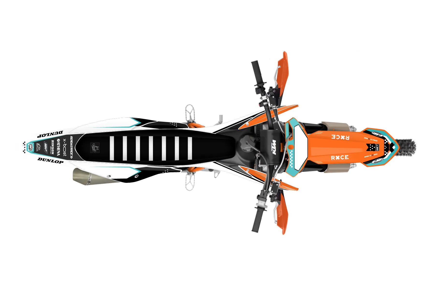 «Rutted» — готовый комплект графики серии Staple для KTM Offroad Graphic Kit KTM XC-F 450 2019. В комплекте: графика на бак и боковые облицовки, крылья (переднее и заднее), передний щиток, номерные таблички, защита вилки. Материал: ПВХ-винил 80 мкр с холодной ламинацией 300 мкр, общая толщина 380 мкр; покрытие глянцевое или матовое на выбор. Устойчив к UV-излучению, воде, бензину и мойке высокого давления. Клей акриловый на сольвентной основе — постоянный, для гибких пластиков. На простых поверхностях монтируется без нагрева; для сложных изгибов рекомендуем фен. Этот пресет можно заказать как есть или взять за основу в конструкторе: поменять цвета, добавить стартовый номер и свой бренд. Производство — 3–5 рабочих дней, доставка по России СДЭКом или Почтой, по СНГ — курьерскими службами.