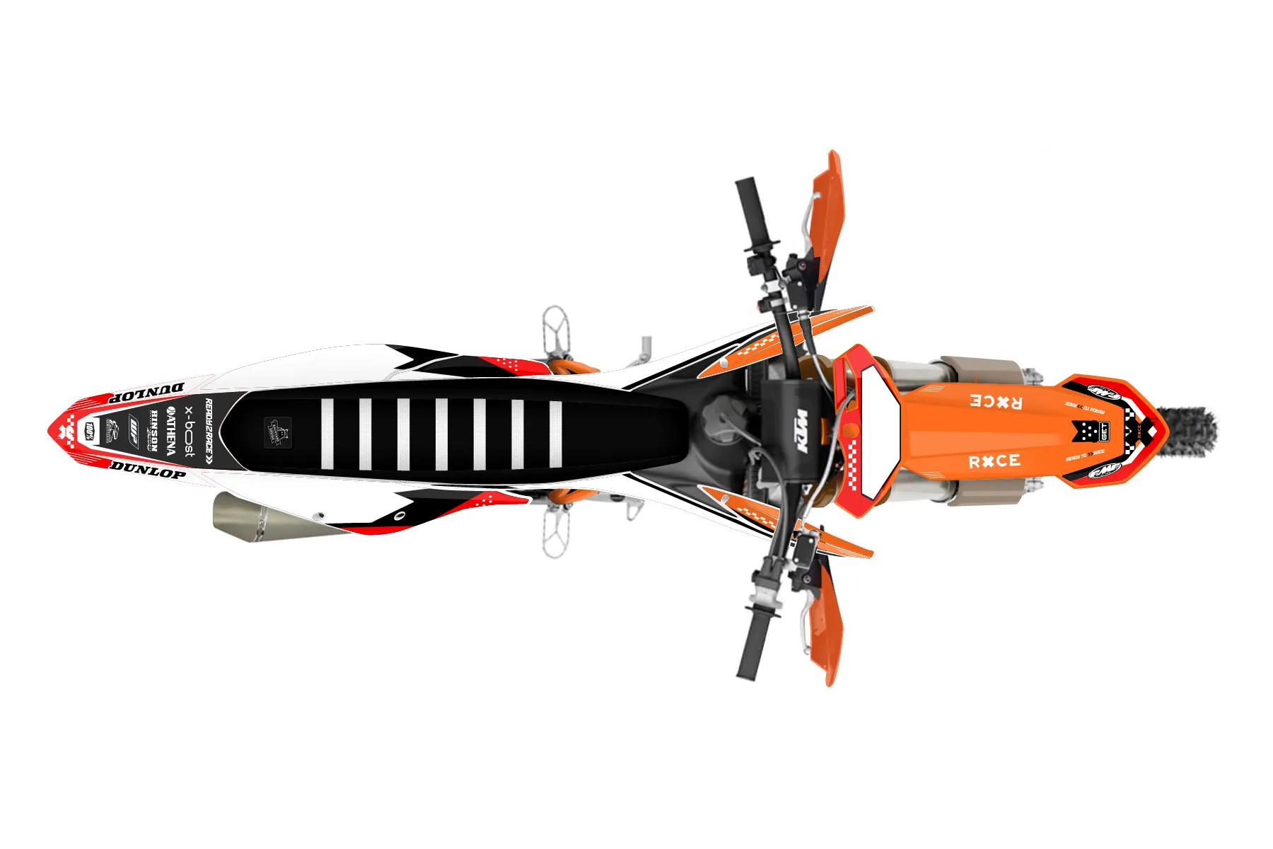 «Spirit» — готовый комплект графики серии Staple для KTM Offroad Graphic Kit KTM XC-F 450 2019. В комплекте: графика на бак и боковые облицовки, крылья (переднее и заднее), передний щиток, номерные таблички, защита вилки. Материал: ПВХ-винил 80 мкр с холодной ламинацией 300 мкр, общая толщина 380 мкр; покрытие глянцевое или матовое на выбор. Устойчив к UV-излучению, воде, бензину и мойке высокого давления. Клей акриловый на сольвентной основе — постоянный, для гибких пластиков. На простых поверхностях монтируется без нагрева; для сложных изгибов рекомендуем фен. Этот пресет можно заказать как есть или взять за основу в конструкторе: поменять цвета, добавить стартовый номер и свой бренд. Производство — 3–5 рабочих дней, доставка по России СДЭКом или Почтой, по СНГ — курьерскими службами.