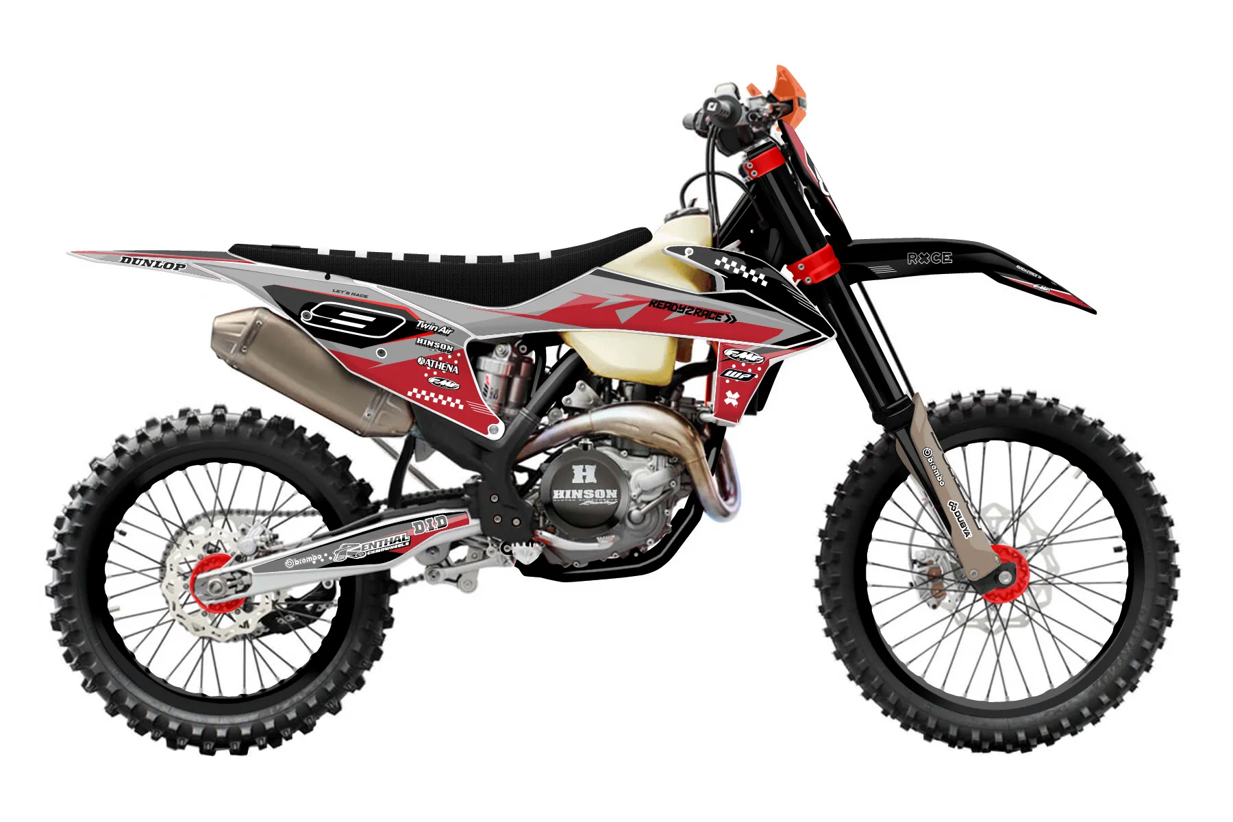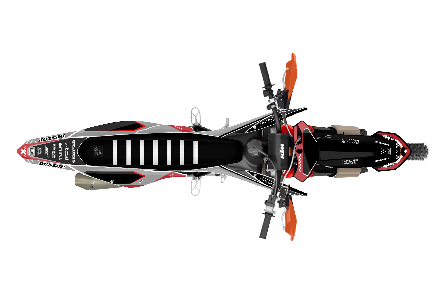 «Tack» — готовый комплект графики серии Staple для KTM Offroad Graphic Kit KTM XC-F 450 2019. В комплекте: графика на бак и боковые облицовки, крылья (переднее и заднее), передний щиток, номерные таблички, защита вилки. Материал: ПВХ-винил 80 мкр с холодной ламинацией 300 мкр, общая толщина 380 мкр; покрытие глянцевое или матовое на выбор. Устойчив к UV-излучению, воде, бензину и мойке высокого давления. Клей акриловый на сольвентной основе — постоянный, для гибких пластиков. На простых поверхностях монтируется без нагрева; для сложных изгибов рекомендуем фен. Этот пресет можно заказать как есть или взять за основу в конструкторе: поменять цвета, добавить стартовый номер и свой бренд. Производство — 3–5 рабочих дней, доставка по России СДЭКом или Почтой, по СНГ — курьерскими службами.