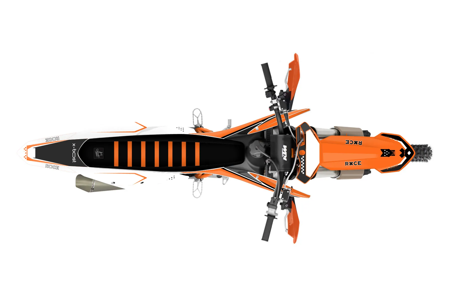 «Tag» — готовый комплект графики серии Staple для KTM Offroad Graphic Kit KTM XC-F 450 2019. В комплекте: графика на бак и боковые облицовки, крылья (переднее и заднее), передний щиток, номерные таблички, защита вилки. Материал: ПВХ-винил 80 мкр с холодной ламинацией 300 мкр, общая толщина 380 мкр; покрытие глянцевое или матовое на выбор. Устойчив к UV-излучению, воде, бензину и мойке высокого давления. Клей акриловый на сольвентной основе — постоянный, для гибких пластиков. На простых поверхностях монтируется без нагрева; для сложных изгибов рекомендуем фен. Этот пресет можно заказать как есть или взять за основу в конструкторе: поменять цвета, добавить стартовый номер и свой бренд. Производство — 3–5 рабочих дней, доставка по России СДЭКом или Почтой, по СНГ — курьерскими службами.