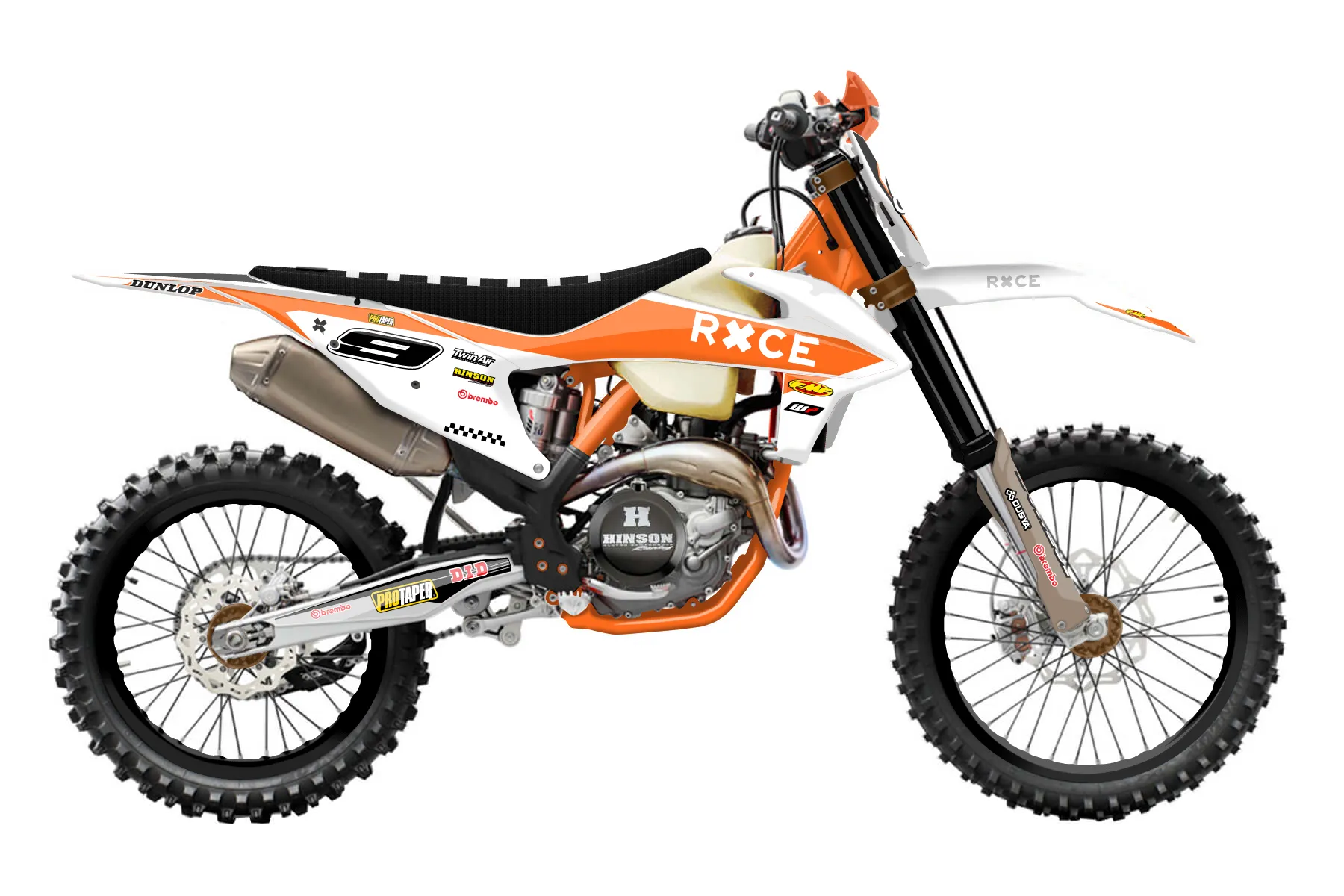 «Tilled» — готовый комплект графики серии Staple для KTM Offroad Graphic Kit KTM XC-F 450 2019. В комплекте: графика на бак и боковые облицовки, крылья (переднее и заднее), передний щиток, номерные таблички, защита вилки. Материал: ПВХ-винил 80 мкр с холодной ламинацией 300 мкр, общая толщина 380 мкр; покрытие глянцевое или матовое на выбор. Устойчив к UV-излучению, воде, бензину и мойке высокого давления. Клей акриловый на сольвентной основе — постоянный, для гибких пластиков. На простых поверхностях монтируется без нагрева; для сложных изгибов рекомендуем фен. Этот пресет можно заказать как есть или взять за основу в конструкторе: поменять цвета, добавить стартовый номер и свой бренд. Производство — 3–5 рабочих дней, доставка по России СДЭКом или Почтой, по СНГ — курьерскими службами.
