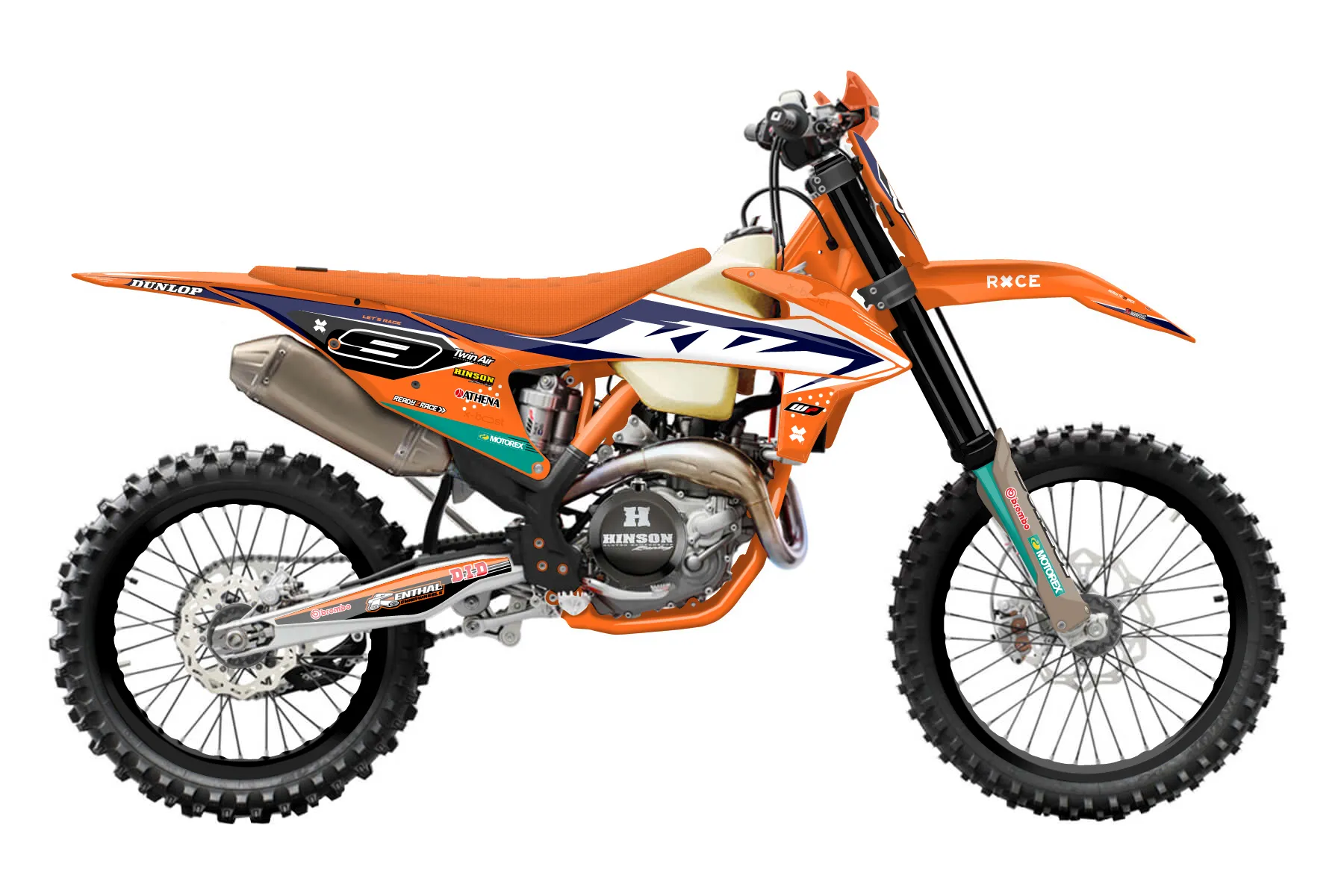 «Zipped» — готовый комплект графики серии Staple для KTM Offroad Graphic Kit KTM XC-F 450 2019. В комплекте: графика на бак и боковые облицовки, крылья (переднее и заднее), передний щиток, номерные таблички, защита вилки. Материал: ПВХ-винил 80 мкр с холодной ламинацией 300 мкр, общая толщина 380 мкр; покрытие глянцевое или матовое на выбор. Устойчив к UV-излучению, воде, бензину и мойке высокого давления. Клей акриловый на сольвентной основе — постоянный, для гибких пластиков. На простых поверхностях монтируется без нагрева; для сложных изгибов рекомендуем фен. Этот пресет можно заказать как есть или взять за основу в конструкторе: поменять цвета, добавить стартовый номер и свой бренд. Производство — 3–5 рабочих дней, доставка по России СДЭКом или Почтой, по СНГ — курьерскими службами.