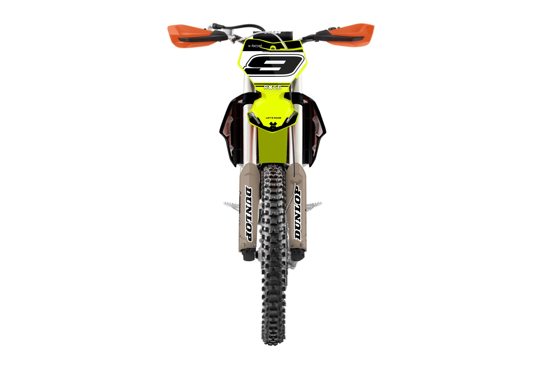 «Chill Fluorscent» — готовый комплект графики серии Untucked для KTM Offroad Graphic Kit KTM XC-F 450 2019. В комплекте: графика на бак и боковые облицовки, крылья (переднее и заднее), передний щиток, номерные таблички, защита вилки. Материал: ПВХ-винил 80 мкр с холодной ламинацией 300 мкр, общая толщина 380 мкр; покрытие глянцевое или матовое на выбор. Устойчив к UV-излучению, воде, бензину и мойке высокого давления. Клей акриловый на сольвентной основе — постоянный, для гибких пластиков. На простых поверхностях монтируется без нагрева; для сложных изгибов рекомендуем фен. Этот пресет можно заказать как есть или взять за основу в конструкторе: поменять цвета, добавить стартовый номер и свой бренд. Производство — 3–5 рабочих дней, доставка по России СДЭКом или Почтой, по СНГ — курьерскими службами.