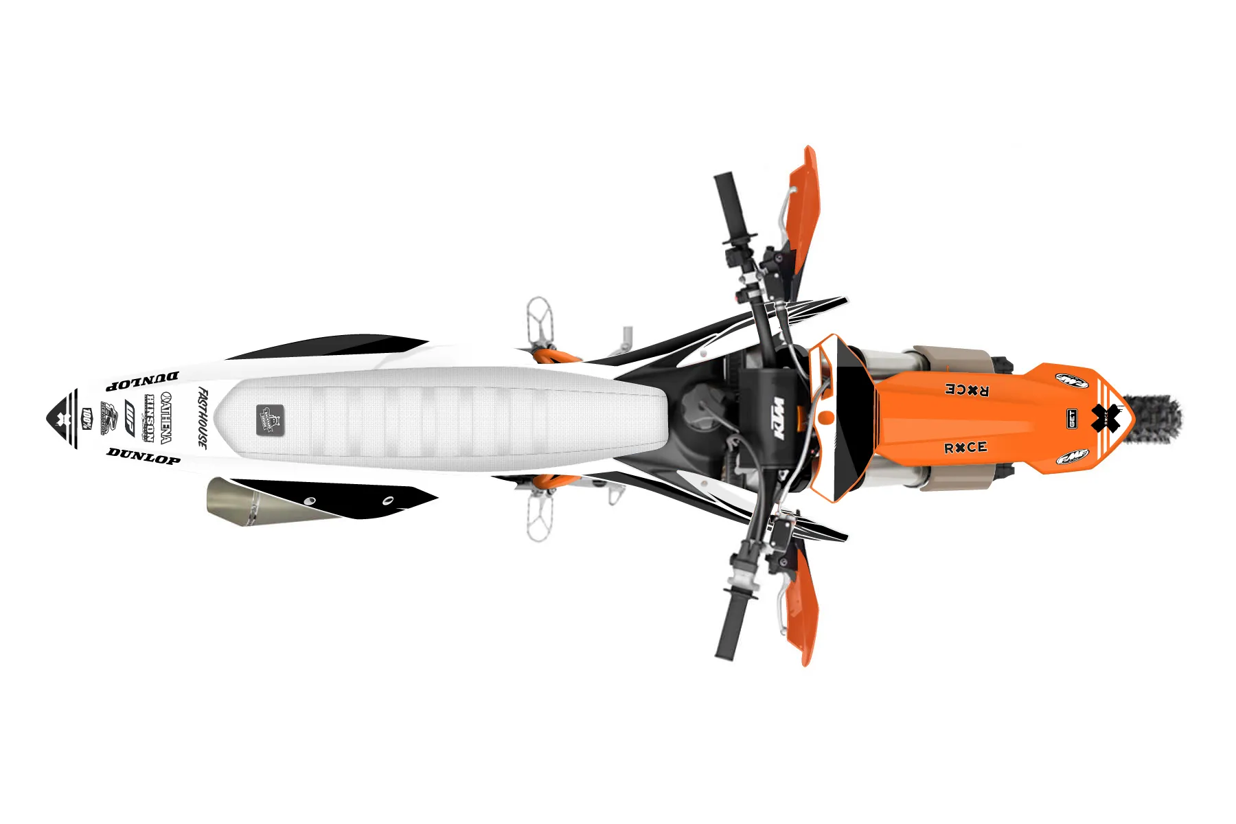 «Infinite» — готовый комплект графики серии Untucked для KTM Offroad Graphic Kit KTM XC-F 450 2019. В комплекте: графика на бак и боковые облицовки, крылья (переднее и заднее), передний щиток, номерные таблички, защита вилки. Материал: ПВХ-винил 80 мкр с холодной ламинацией 300 мкр, общая толщина 380 мкр; покрытие глянцевое или матовое на выбор. Устойчив к UV-излучению, воде, бензину и мойке высокого давления. Клей акриловый на сольвентной основе — постоянный, для гибких пластиков. На простых поверхностях монтируется без нагрева; для сложных изгибов рекомендуем фен. Этот пресет можно заказать как есть или взять за основу в конструкторе: поменять цвета, добавить стартовый номер и свой бренд. Производство — 3–5 рабочих дней, доставка по России СДЭКом или Почтой, по СНГ — курьерскими службами.