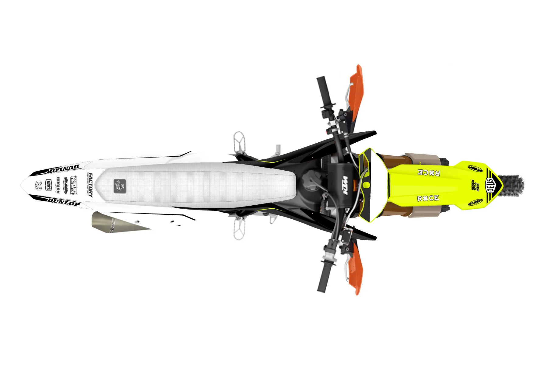 «Ride Neon» — готовый комплект графики серии Untucked для KTM Offroad Graphic Kit KTM XC-F 450 2019. В комплекте: графика на бак и боковые облицовки, крылья (переднее и заднее), передний щиток, номерные таблички, защита вилки. Материал: ПВХ-винил 80 мкр с холодной ламинацией 300 мкр, общая толщина 380 мкр; покрытие глянцевое или матовое на выбор. Устойчив к UV-излучению, воде, бензину и мойке высокого давления. Клей акриловый на сольвентной основе — постоянный, для гибких пластиков. На простых поверхностях монтируется без нагрева; для сложных изгибов рекомендуем фен. Этот пресет можно заказать как есть или взять за основу в конструкторе: поменять цвета, добавить стартовый номер и свой бренд. Производство — 3–5 рабочих дней, доставка по России СДЭКом или Почтой, по СНГ — курьерскими службами.