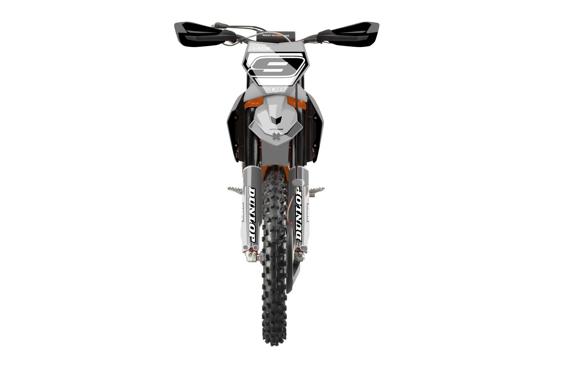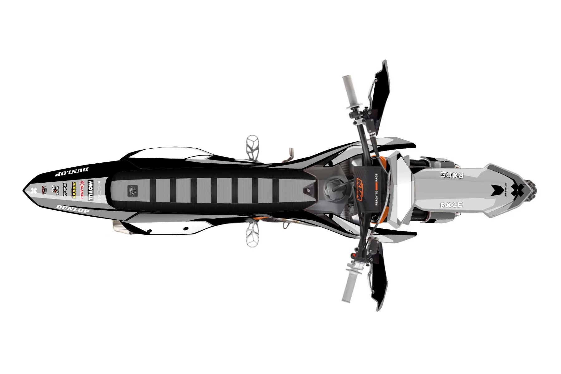 «Concepts» — готовый комплект графики серии Flow для KTM Offroad Graphic Kit KTM XC-F 450 2023. В комплекте: графика на бак и боковые облицовки, крылья (переднее и заднее), передний щиток, номерные таблички, защита вилки. Материал: ПВХ-винил 80 мкр с холодной ламинацией 300 мкр, общая толщина 380 мкр; покрытие глянцевое или матовое на выбор. Устойчив к UV-излучению, воде, бензину и мойке высокого давления. Клей акриловый на сольвентной основе — постоянный, для гибких пластиков. На простых поверхностях монтируется без нагрева; для сложных изгибов рекомендуем фен. Этот пресет можно заказать как есть или взять за основу в конструкторе: поменять цвета, добавить стартовый номер и свой бренд. Производство — 3–5 рабочих дней, доставка по России СДЭКом или Почтой, по СНГ — курьерскими службами.