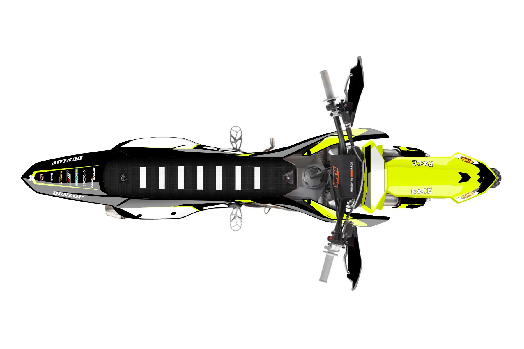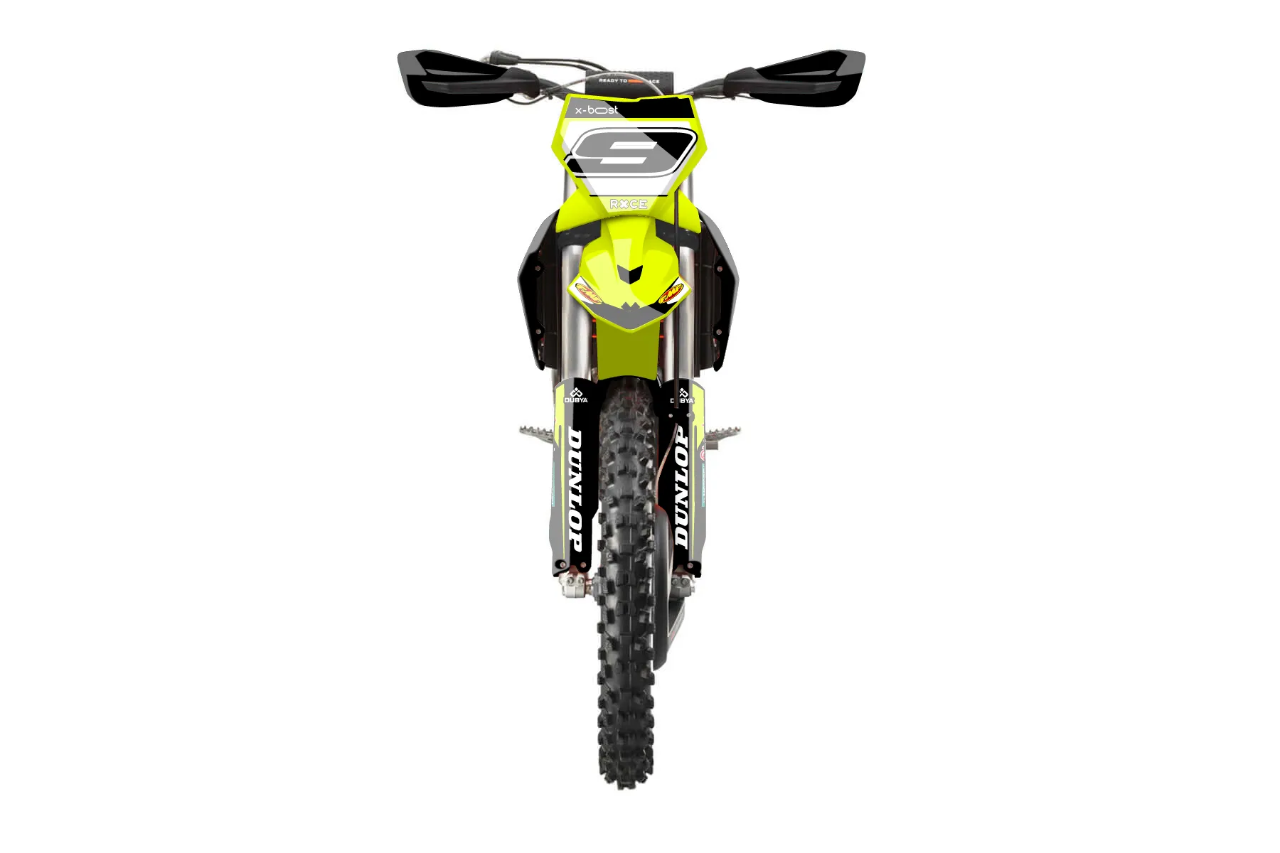 «Lucent Neon» — готовый комплект графики серии Flow для KTM Offroad Graphic Kit KTM XC-F 450 2023. В комплекте: графика на бак и боковые облицовки, крылья (переднее и заднее), передний щиток, номерные таблички, защита вилки. Материал: ПВХ-винил 80 мкр с холодной ламинацией 300 мкр, общая толщина 380 мкр; покрытие глянцевое или матовое на выбор. Устойчив к UV-излучению, воде, бензину и мойке высокого давления. Клей акриловый на сольвентной основе — постоянный, для гибких пластиков. На простых поверхностях монтируется без нагрева; для сложных изгибов рекомендуем фен. Этот пресет можно заказать как есть или взять за основу в конструкторе: поменять цвета, добавить стартовый номер и свой бренд. Производство — 3–5 рабочих дней, доставка по России СДЭКом или Почтой, по СНГ — курьерскими службами.