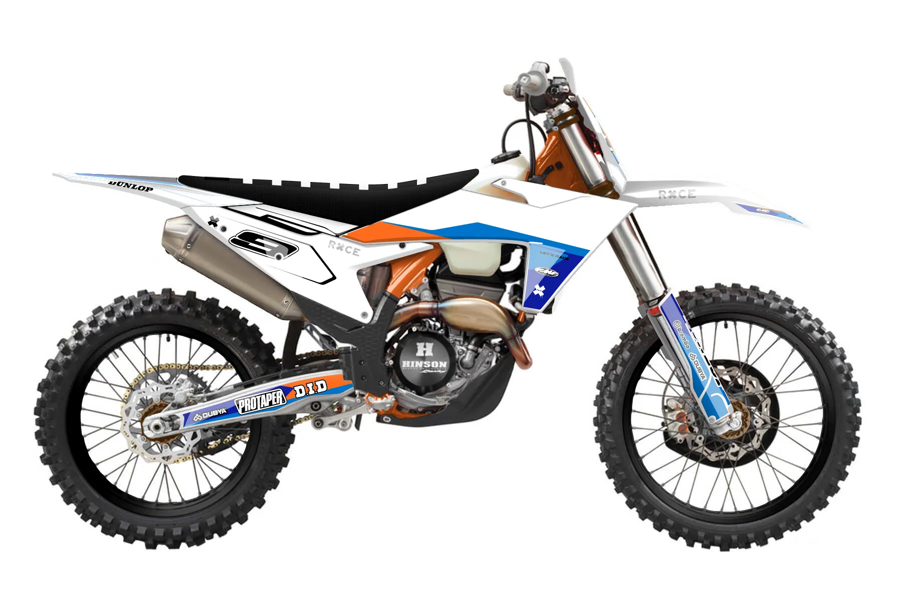 «Oldschool» — готовый комплект графики серии Flow для KTM Offroad Graphic Kit KTM XC-F 450 2023. В комплекте: графика на бак и боковые облицовки, крылья (переднее и заднее), передний щиток, номерные таблички, защита вилки. Материал: ПВХ-винил 80 мкр с холодной ламинацией 300 мкр, общая толщина 380 мкр; покрытие глянцевое или матовое на выбор. Устойчив к UV-излучению, воде, бензину и мойке высокого давления. Клей акриловый на сольвентной основе — постоянный, для гибких пластиков. На простых поверхностях монтируется без нагрева; для сложных изгибов рекомендуем фен. Этот пресет можно заказать как есть или взять за основу в конструкторе: поменять цвета, добавить стартовый номер и свой бренд. Производство — 3–5 рабочих дней, доставка по России СДЭКом или Почтой, по СНГ — курьерскими службами.