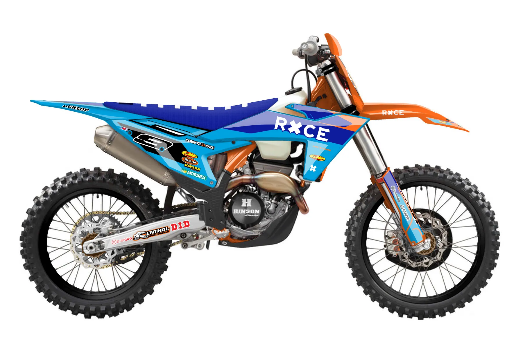 «Signature» — готовый комплект графики серии Flow для KTM Offroad Graphic Kit KTM XC-F 450 2023. В комплекте: графика на бак и боковые облицовки, крылья (переднее и заднее), передний щиток, номерные таблички, защита вилки. Материал: ПВХ-винил 80 мкр с холодной ламинацией 300 мкр, общая толщина 380 мкр; покрытие глянцевое или матовое на выбор. Устойчив к UV-излучению, воде, бензину и мойке высокого давления. Клей акриловый на сольвентной основе — постоянный, для гибких пластиков. На простых поверхностях монтируется без нагрева; для сложных изгибов рекомендуем фен. Этот пресет можно заказать как есть или взять за основу в конструкторе: поменять цвета, добавить стартовый номер и свой бренд. Производство — 3–5 рабочих дней, доставка по России СДЭКом или Почтой, по СНГ — курьерскими службами.