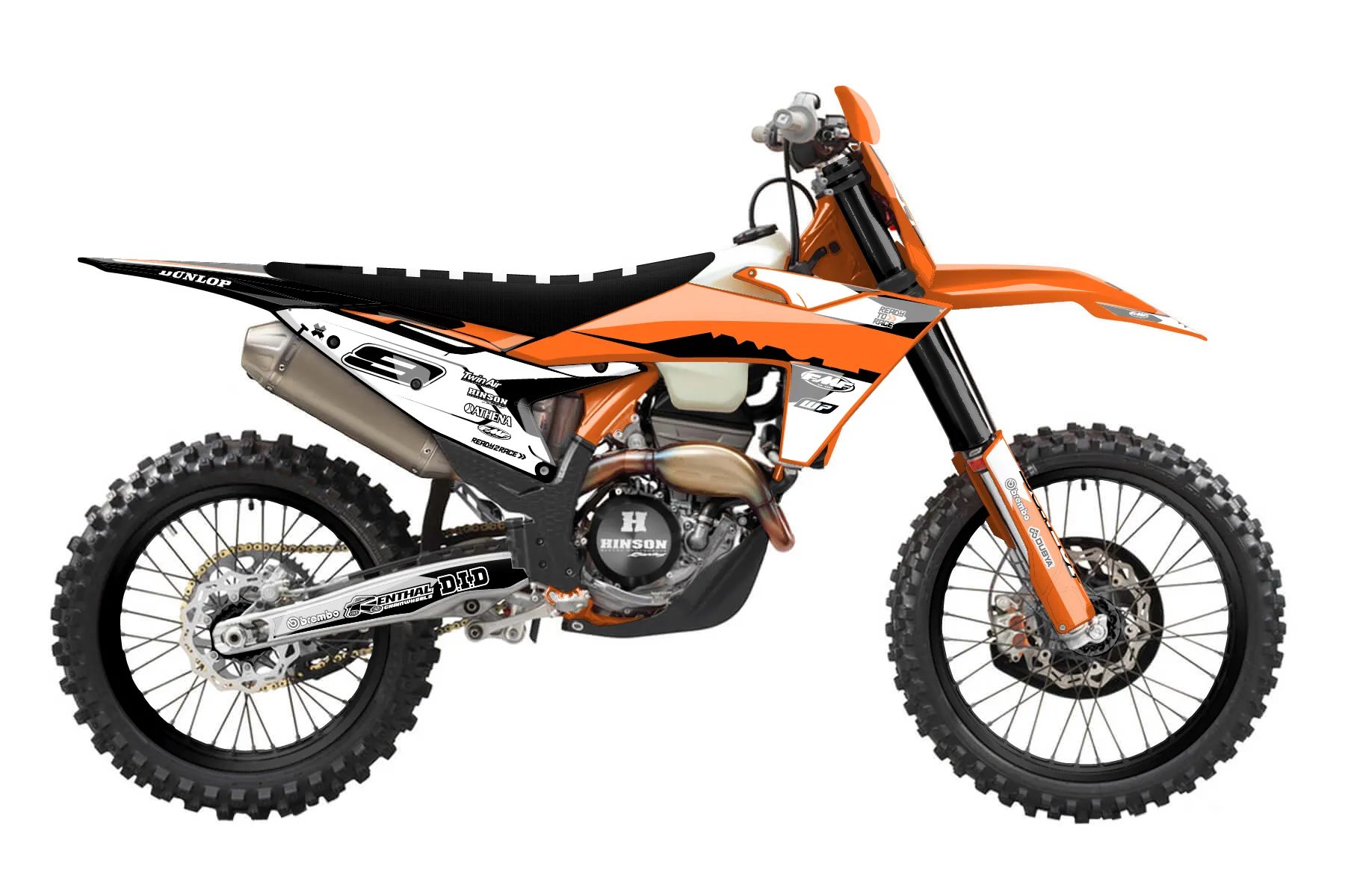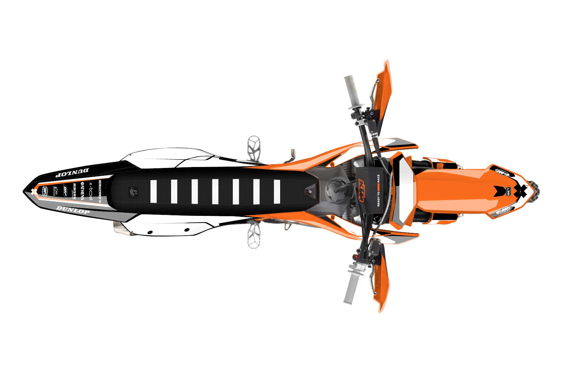 «Spotlight» — готовый комплект графики серии Flow для KTM Offroad Graphic Kit KTM XC-F 450 2023. В комплекте: графика на бак и боковые облицовки, крылья (переднее и заднее), передний щиток, номерные таблички, защита вилки. Материал: ПВХ-винил 80 мкр с холодной ламинацией 300 мкр, общая толщина 380 мкр; покрытие глянцевое или матовое на выбор. Устойчив к UV-излучению, воде, бензину и мойке высокого давления. Клей акриловый на сольвентной основе — постоянный, для гибких пластиков. На простых поверхностях монтируется без нагрева; для сложных изгибов рекомендуем фен. Этот пресет можно заказать как есть или взять за основу в конструкторе: поменять цвета, добавить стартовый номер и свой бренд. Производство — 3–5 рабочих дней, доставка по России СДЭКом или Почтой, по СНГ — курьерскими службами.