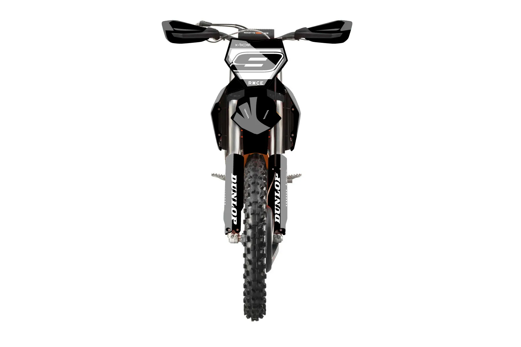 «Vector» — готовый комплект графики серии Flow для KTM Offroad Graphic Kit KTM XC-F 450 2023. В комплекте: графика на бак и боковые облицовки, крылья (переднее и заднее), передний щиток, номерные таблички, защита вилки. Материал: ПВХ-винил 80 мкр с холодной ламинацией 300 мкр, общая толщина 380 мкр; покрытие глянцевое или матовое на выбор. Устойчив к UV-излучению, воде, бензину и мойке высокого давления. Клей акриловый на сольвентной основе — постоянный, для гибких пластиков. На простых поверхностях монтируется без нагрева; для сложных изгибов рекомендуем фен. Этот пресет можно заказать как есть или взять за основу в конструкторе: поменять цвета, добавить стартовый номер и свой бренд. Производство — 3–5 рабочих дней, доставка по России СДЭКом или Почтой, по СНГ — курьерскими службами.
