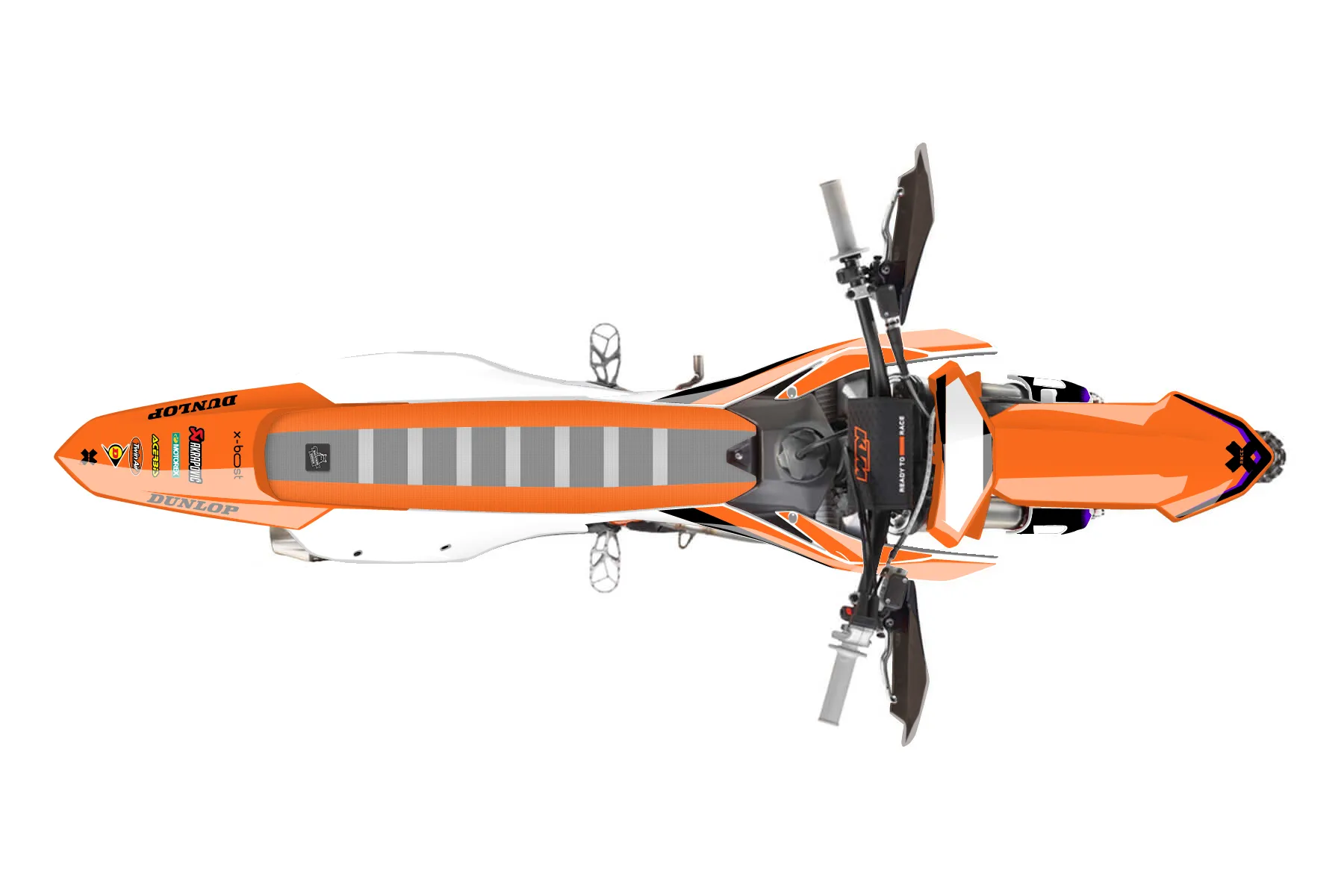 «Poto» — готовый комплект графики серии Fusion для KTM Offroad Graphic Kit KTM XC-F 450 2023. В комплекте: графика на бак и боковые облицовки, крылья (переднее и заднее), передний щиток, номерные таблички, защита вилки. Материал: ПВХ-винил 80 мкр с холодной ламинацией 300 мкр, общая толщина 380 мкр; покрытие глянцевое или матовое на выбор. Устойчив к UV-излучению, воде, бензину и мойке высокого давления. Клей акриловый на сольвентной основе — постоянный, для гибких пластиков. На простых поверхностях монтируется без нагрева; для сложных изгибов рекомендуем фен. Этот пресет можно заказать как есть или взять за основу в конструкторе: поменять цвета, добавить стартовый номер и свой бренд. Производство — 3–5 рабочих дней, доставка по России СДЭКом или Почтой, по СНГ — курьерскими службами.