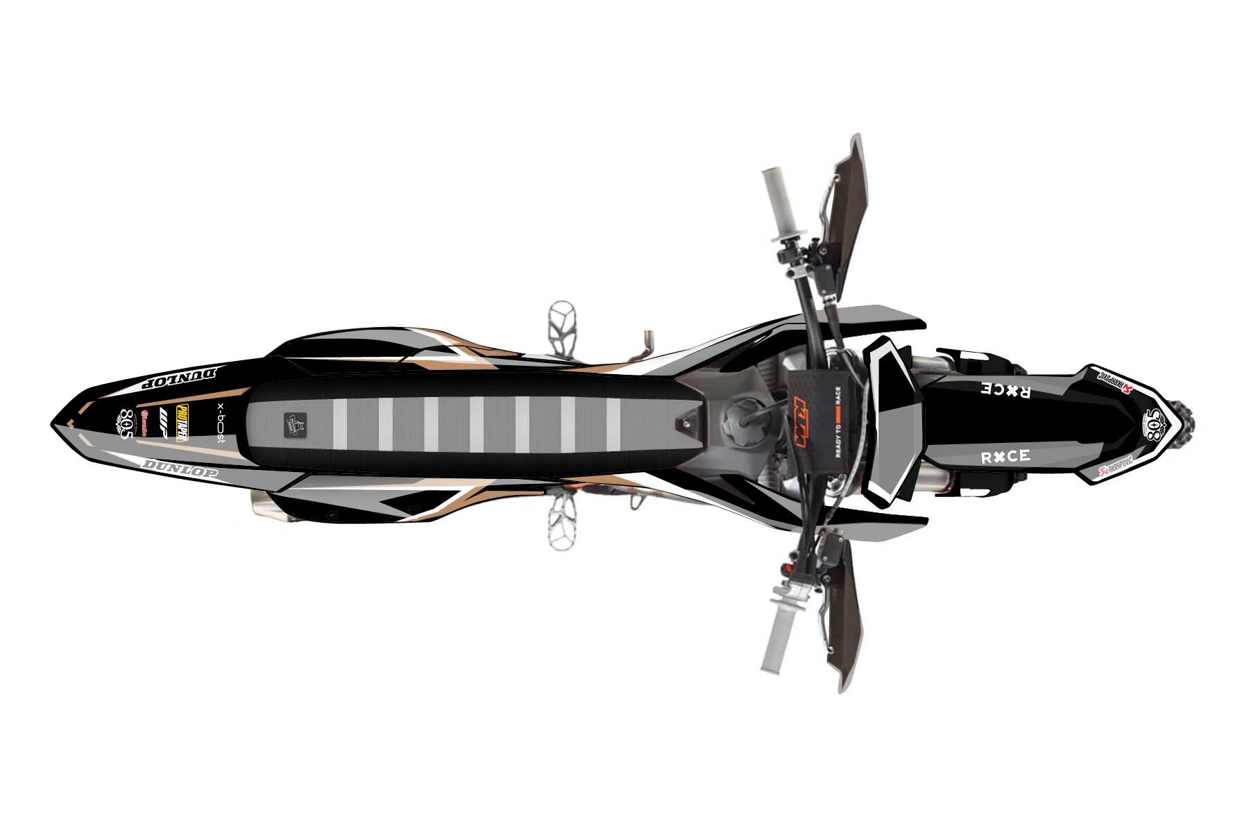 «Secure» — готовый комплект графики серии Fusion для KTM Offroad Graphic Kit KTM XC-F 450 2023. В комплекте: графика на бак и боковые облицовки, крылья (переднее и заднее), передний щиток, номерные таблички, защита вилки. Материал: ПВХ-винил 80 мкр с холодной ламинацией 300 мкр, общая толщина 380 мкр; покрытие глянцевое или матовое на выбор. Устойчив к UV-излучению, воде, бензину и мойке высокого давления. Клей акриловый на сольвентной основе — постоянный, для гибких пластиков. На простых поверхностях монтируется без нагрева; для сложных изгибов рекомендуем фен. Этот пресет можно заказать как есть или взять за основу в конструкторе: поменять цвета, добавить стартовый номер и свой бренд. Производство — 3–5 рабочих дней, доставка по России СДЭКом или Почтой, по СНГ — курьерскими службами.